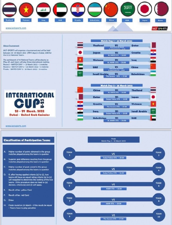 23日,U23国家队就要迎来迪拜杯的比赛,迪拜杯的赛制比较特殊:迪拜杯参赛球队总计10支,分别是日本、克罗地亚、沙特阿拉伯、乌兹别克、伊拉克、阿联酋、卡塔尔、中国、泰国以及越南。在前两轮,每个球队都要遇到两个对手,然后根据前两轮的成绩,进行一二名排位赛、三四名排位赛,以此类推。规则未必多么公平,但相对合理。