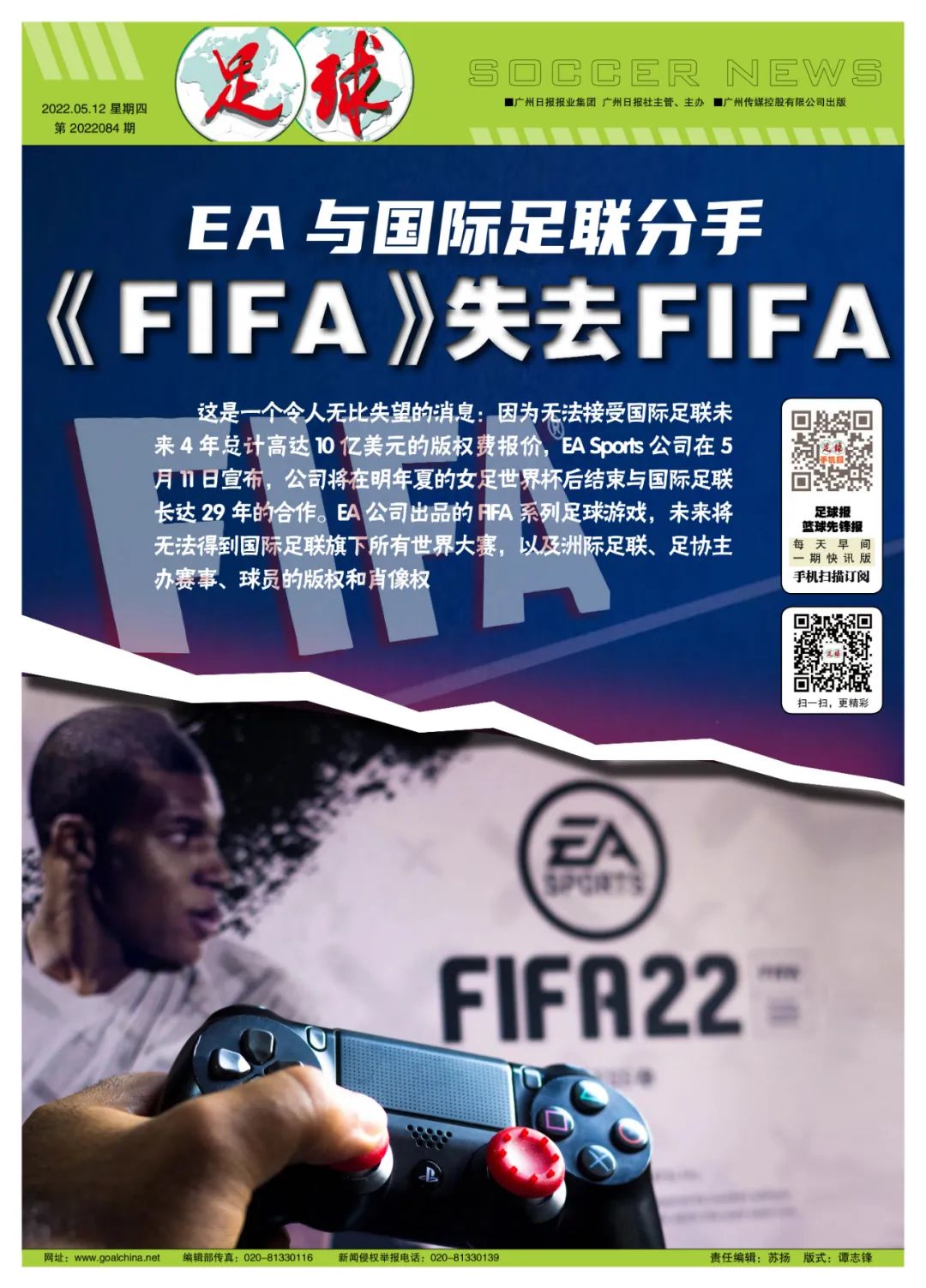 记者寒冰报道 这听起来像是一句绕口令:“FIFA(国际足联)与和它同名的FIFA足球游戏Game Over了”。