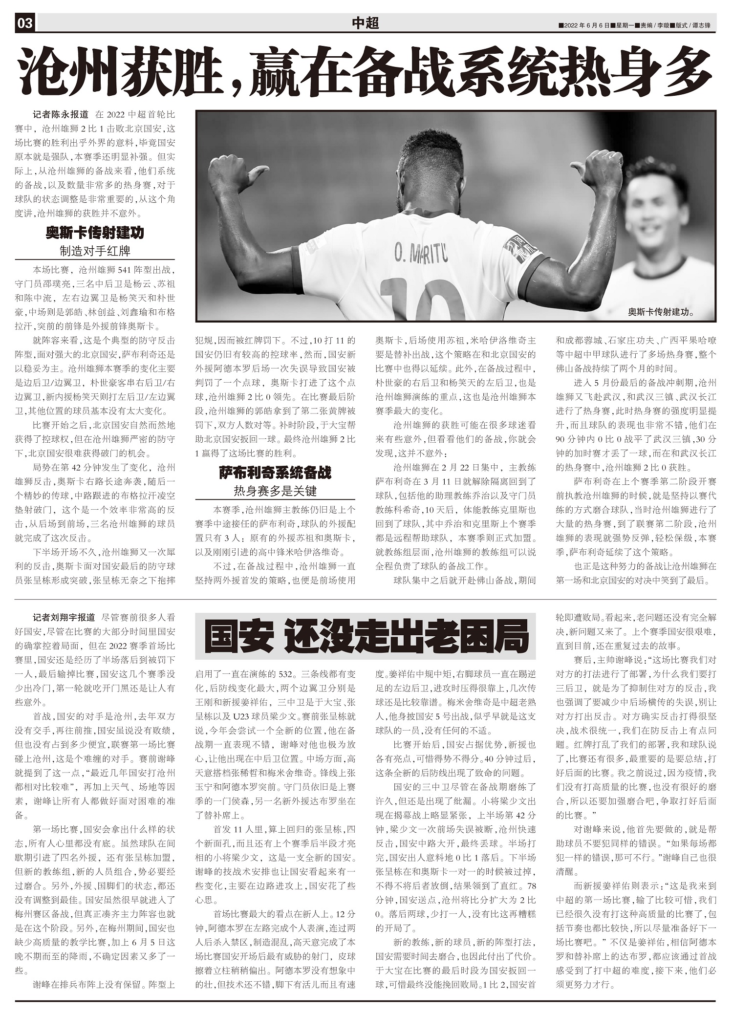 在2022中超首轮比赛中,沧州雄狮2比1击败北京国安,这场比赛的胜利出乎外界的意料,毕竟国安原本就是...