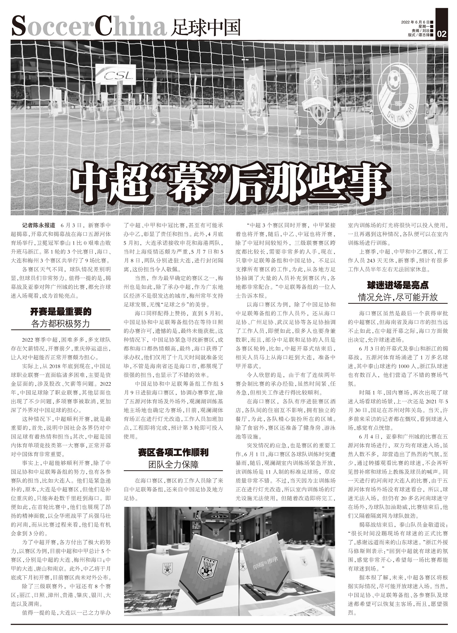 6月3日,中超大幕开启,在3个比赛日的比赛中,9场比赛在海口、大连、梅州三个赛区进行。