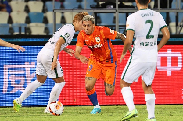 通过首场比赛来看,目前泰山队存在两个主要的问题,其一就是显而易见的锋无力,在揭幕战中,泰山队其实是无锋战术:前场更多依靠刘洋、莫伊塞斯和金敬道的穿插跑动来实现进攻。