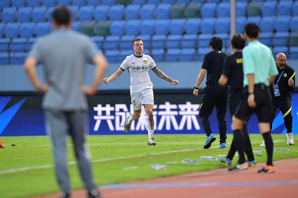 国安过去一段时间以来,在进攻端都是靠着状态火热的张玉宁支撑。本场比赛张玉宁表现依然不错,开场不久就打入一粒头球,可惜被判越位,入球无效。他始终是国安前场最有威胁的支点,处理球的能力明显高出一个水准。