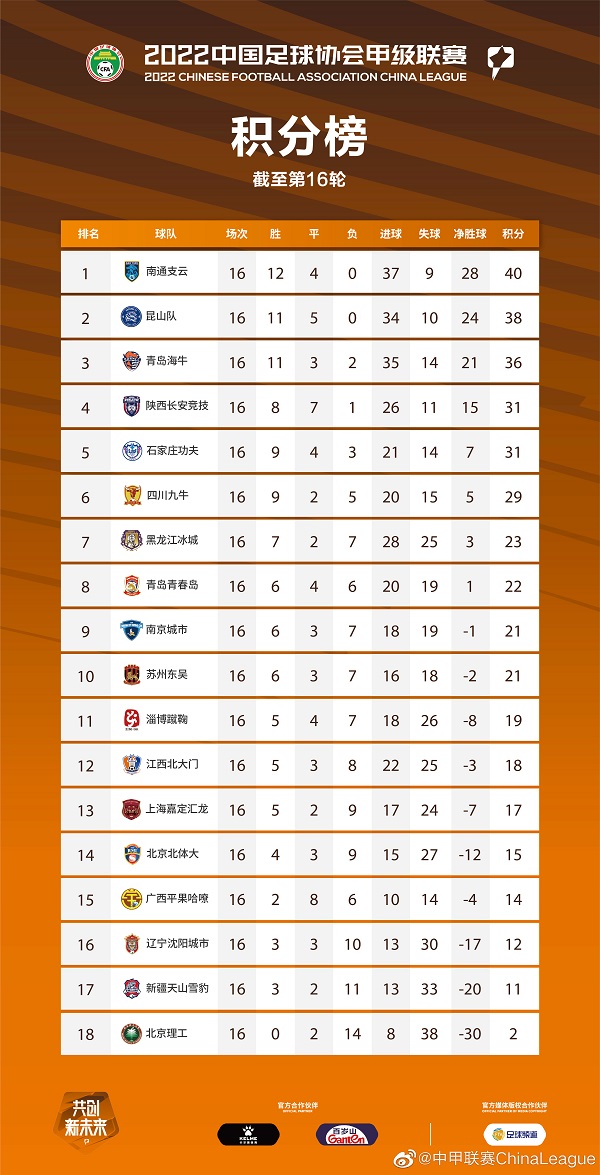 尽管受疫情影响,今年的中甲联赛没有恢复主客场制,影响力也被外界诟病不少,但拥有四支球队的江苏军团总体表现不错,尤其在中甲两阶段结束后排名前两位的南通支云和昆山队,给人看到了冲超球队一股久违的冲劲,不但战绩好,精神面貌也有别于中甲整体态势。此外,苏州东吴换帅之后也呈现上升势头,而南京城市在第二阶段最后一轮战胜青春岛之后,排名与东吴分列第9、10位,暂时保级无忧(见右图)。