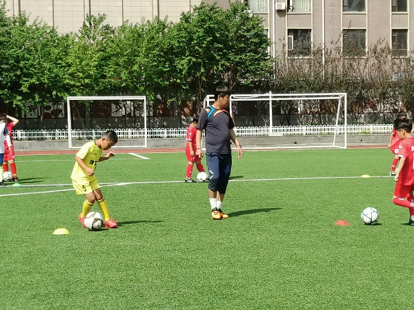 记者来到学校的时候,学校里的两支球队正在训练,分别是小学甲组(小学高年龄段)和小学乙组(小学低年龄段)的两支校队,带队的教练是分别是高敏琦和金天龙(体育组组长)。
