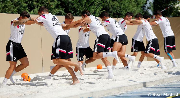 这些视频中,贝尔和特里都是在沙坑地面进行训练,这是他们从伤病中恢复的手段之一。而皇马一直在使用沙坑作为特殊的训练手段,以确保球队在季前和赛季期间日常训练中,球员可以得到更好的运动表现。相比球员们习以为常的草地训练,沙地训练有诸多优势。首先是因为高质量沙地的松软,迫使球员们必须付出更多精力和体力,才能完成在草地上相同的技术动作。相关的比较研究证明:穿鞋和赤脚在沙滩上跑步并无区别,但相比草地都显示出大约1.5倍的净有氧能量消耗、2.5倍的净无氧能量消耗,以及总计1.5倍的能量消耗。