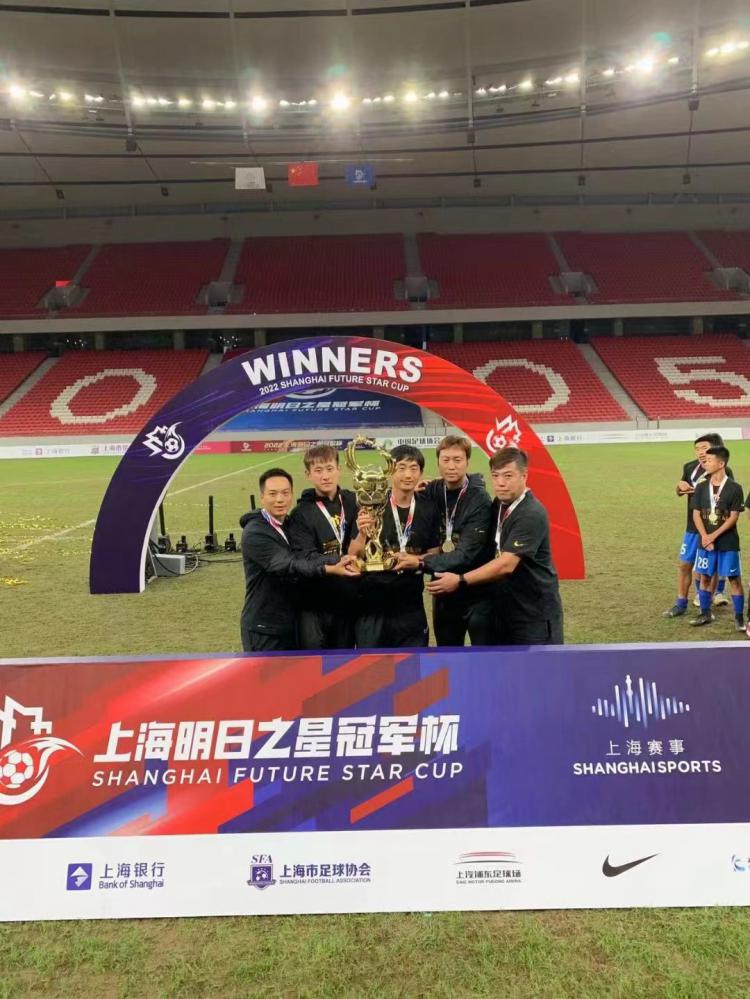 2022年10月4日,2022上海明日之星冠军杯足球赛决赛在上海上汽浦东足球场进行,凭借徐华澍罚入点球以及王子衡的梅开二度,上海U15蓝队3比0战胜浙江能源绿城U15队,夺得该项赛事冠军。上海U15蓝队是以上海申花U15梯队为班底组建的,主教练是陶金。对于这个名字,相信不少球迷还有印象,陶金是前申花球员,2019年退役并转型,在申花梯队开始了自己的执教生涯。对于这次夺冠,陶金表示最关键是队员发挥出色。比赛结束后,陶金带着U15梯队返回了康桥基地,在这个熟悉的地方,继续朝着自己心中的梦想前行。