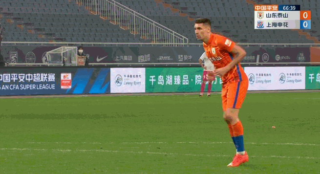 本场比赛,泰山上下非常重视,开场后,他们就完全掌控了比赛的主导权,通过疯狂的前场逼抢,几乎不给申花拿球反击的机会。整个上半场,泰山控球率高达79.8%,射门次数比为7比1,期间创造了两三次机会,但都未能把握住。