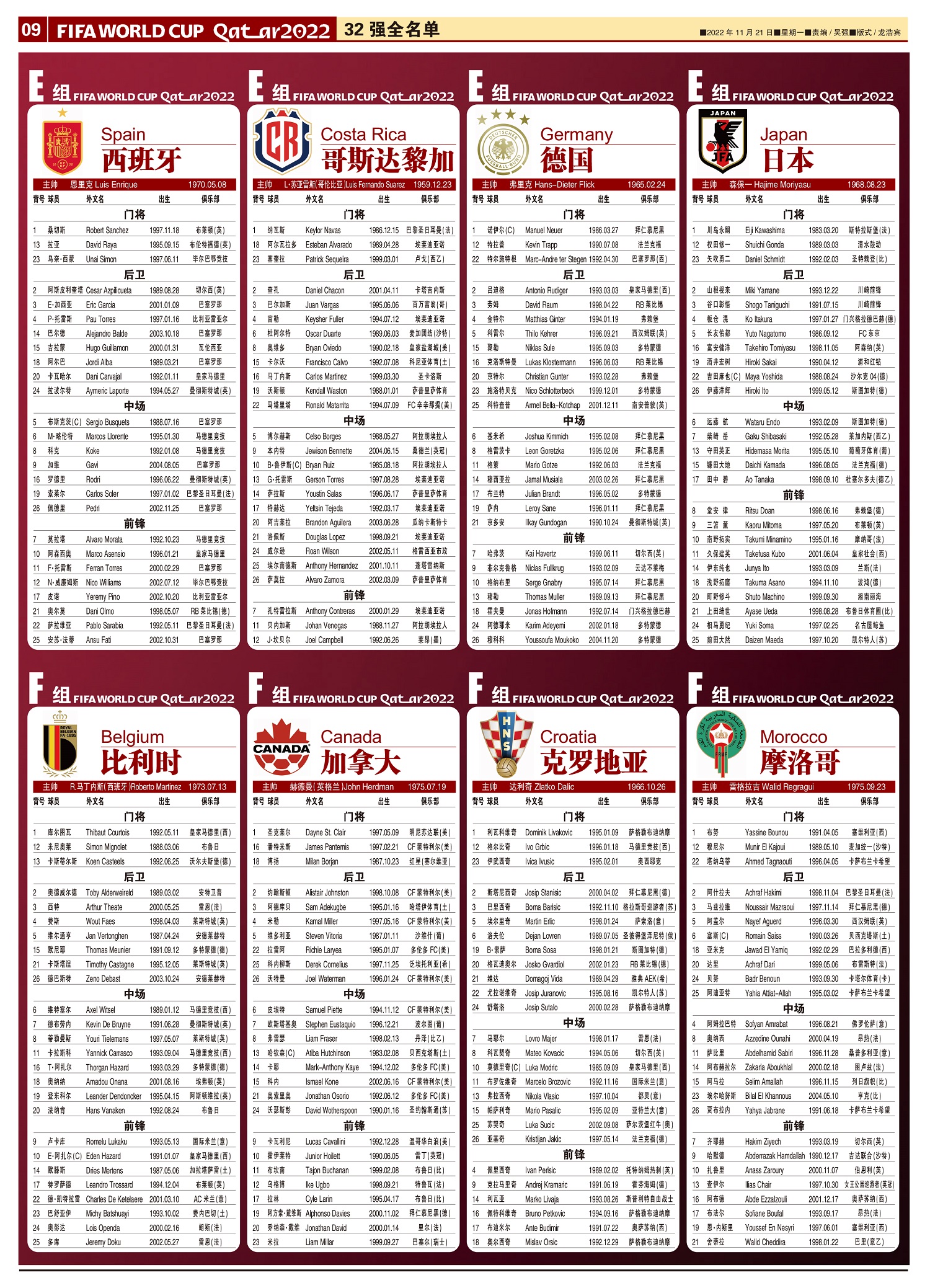 最后一届32强世界杯全名单,最详尽的资料,最权威的译名,最可靠的观赛指南。纸质名单,一目了然。