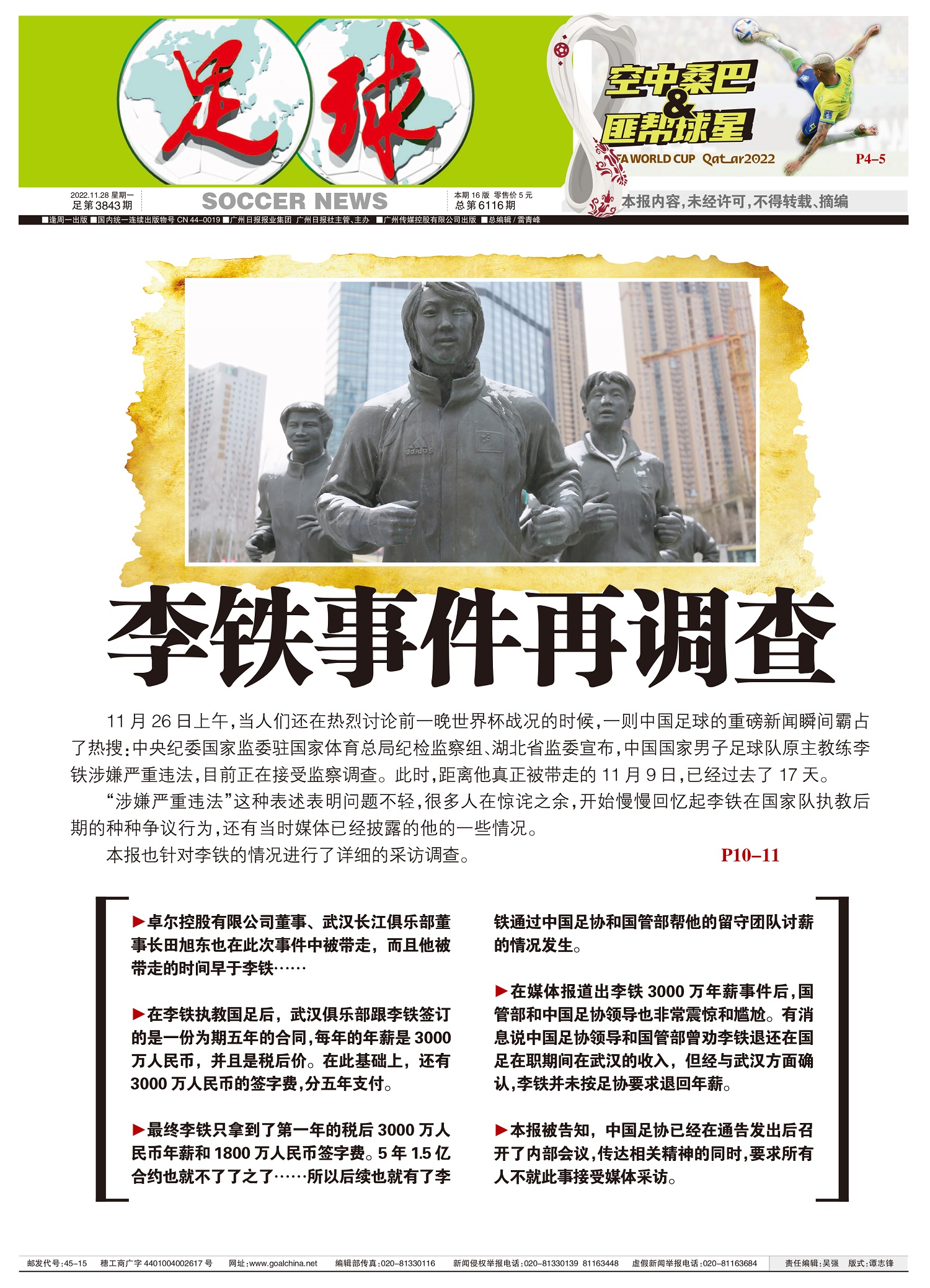 11月26日上午,当人们还在热烈讨论前一晚世界杯战况的时候,一则中国足球的重磅新闻瞬间霸占了热搜:中...