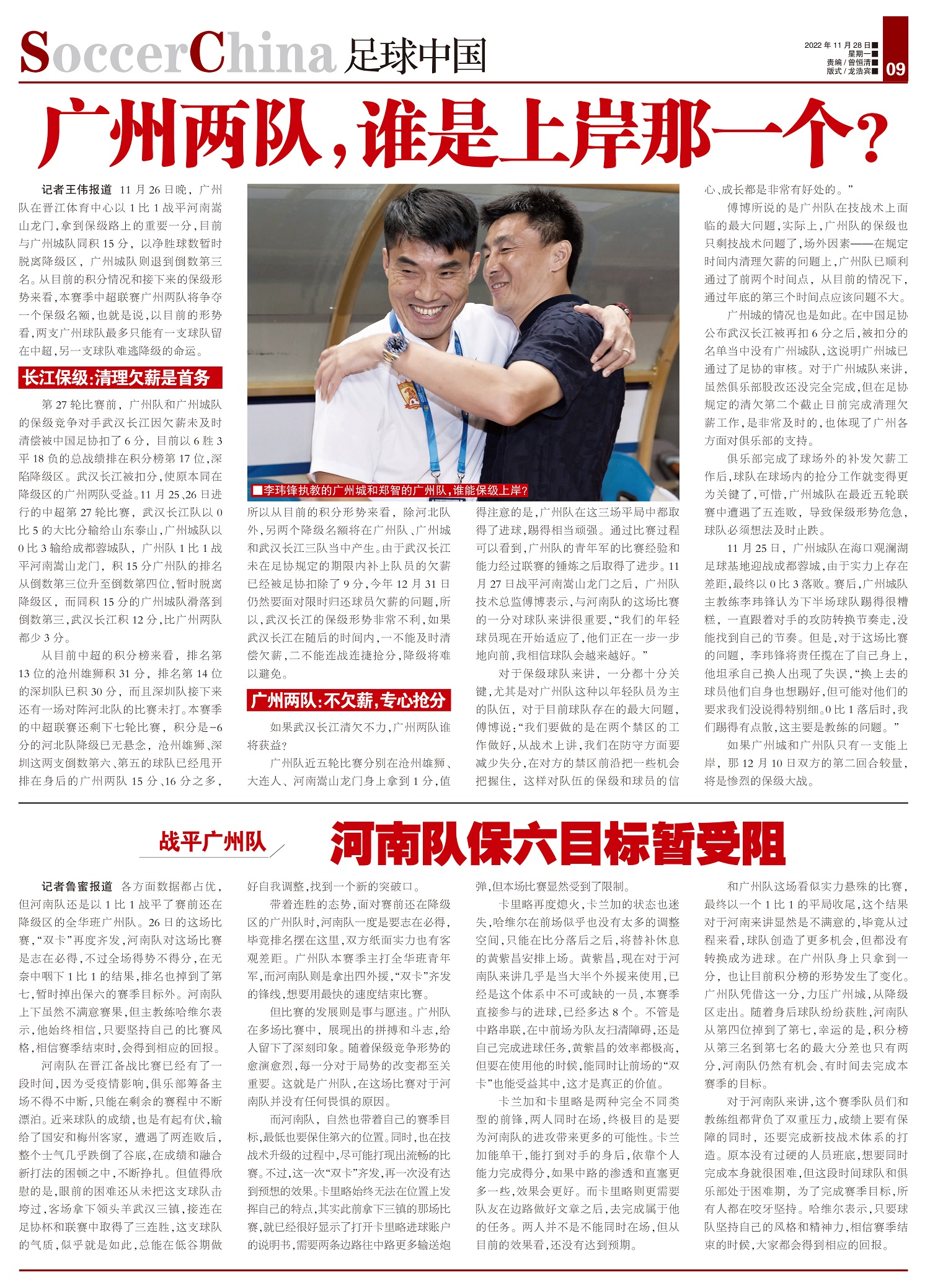 11月26日晚,广州队在晋江体育中心以1比1战平河南嵩山龙门,拿到保级路上的重要一分,目前与广州城队...