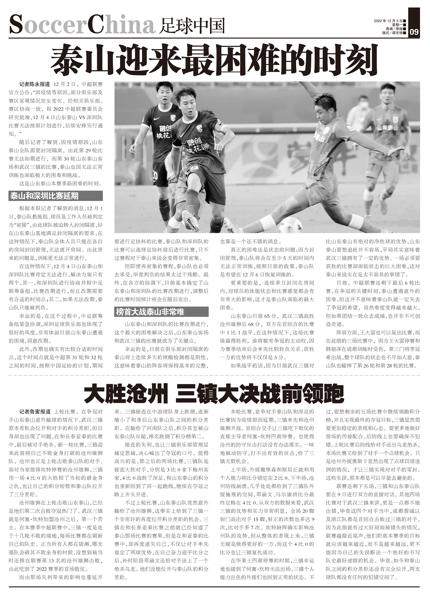 上轮比赛,在争冠对手山东泰山意外输球的情况下,武汉三镇原本有机会拉开和对手的积分差距,但自身却也出现...