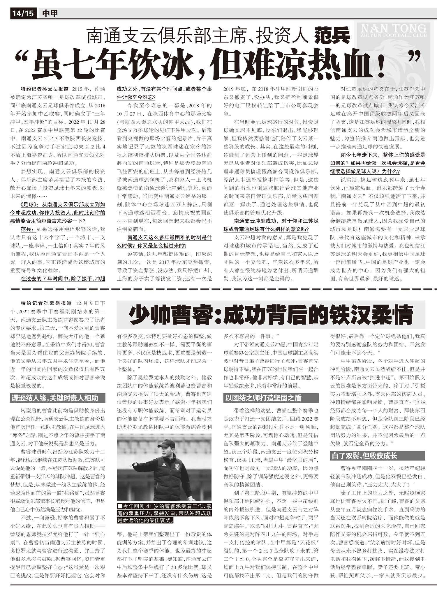 南通支云俱乐部主席、投资人 范兵 “虽七年饮冰,但难凉热血!”