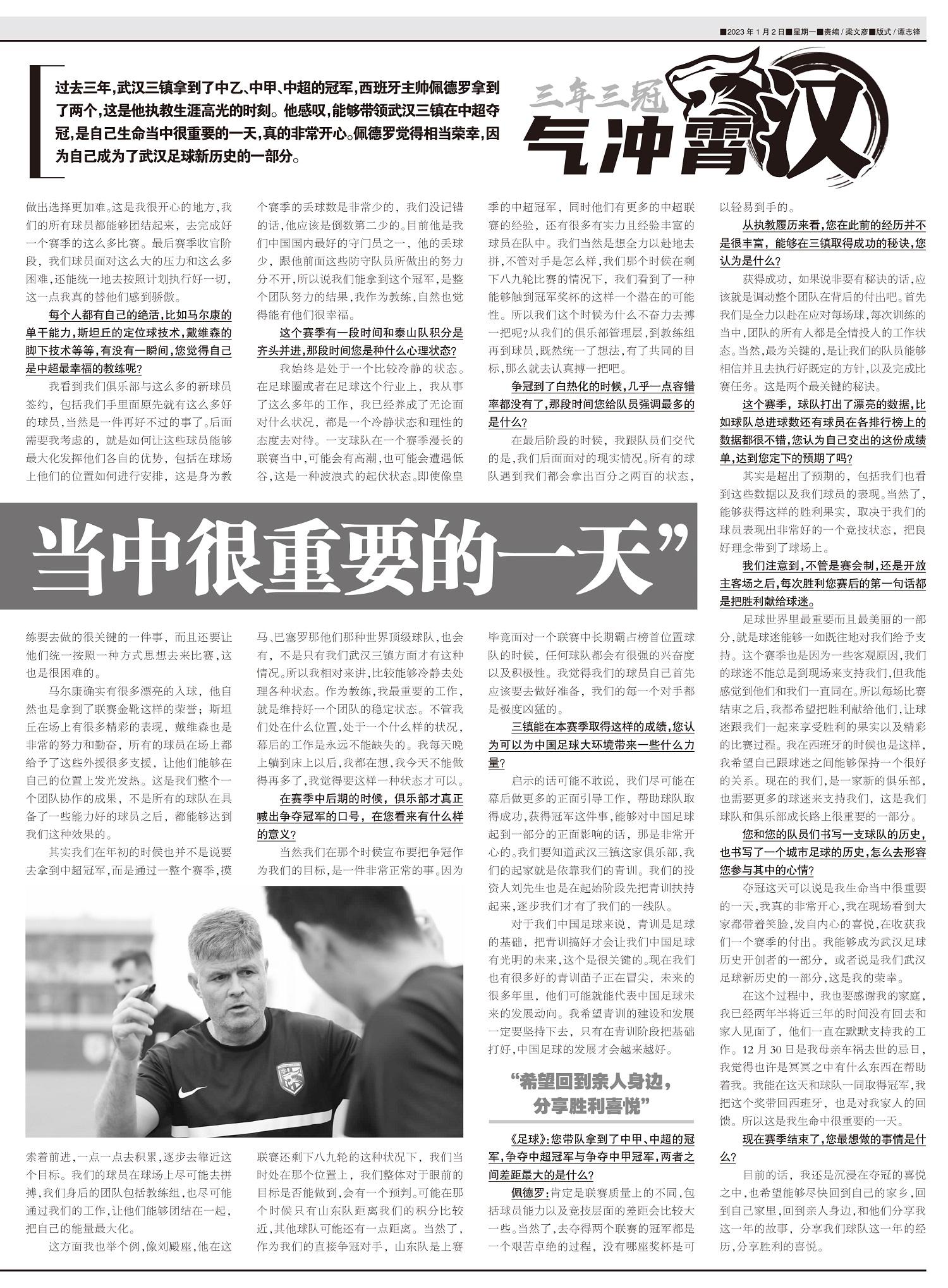 2022年12月31日,中超年度大戏落幕,武汉三镇获得联赛冠军。从2020年到2022年,他们接连取...