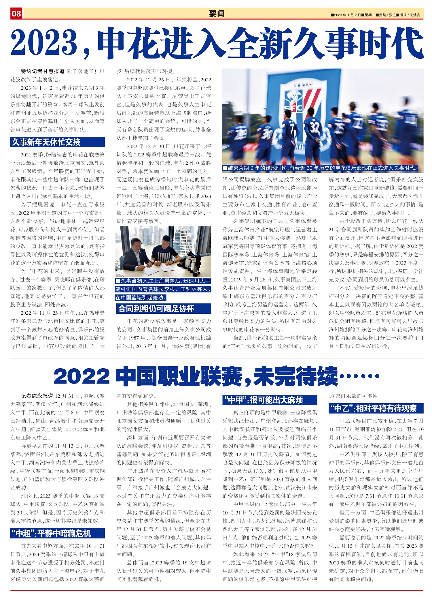 2023年1月2日,申花结束为期9年的绿地时代,这家有着近30年历史的俱乐部将翻开新的篇章。今天球队...