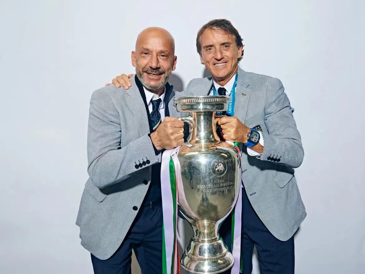 维亚利足球乃至人生最后的辉煌,自然是2019年开始担任意大利国家队领队,与挚友曼奇尼通力合作。期间,他战胜了胰腺癌,又在温布利球场捧起了德劳内杯。这是意大利足球阔别15年,才再次拿到重大赛事冠军,而且还是在他最熟悉的温布利球场击败东道主英格兰夺冠,堪称巅峰。