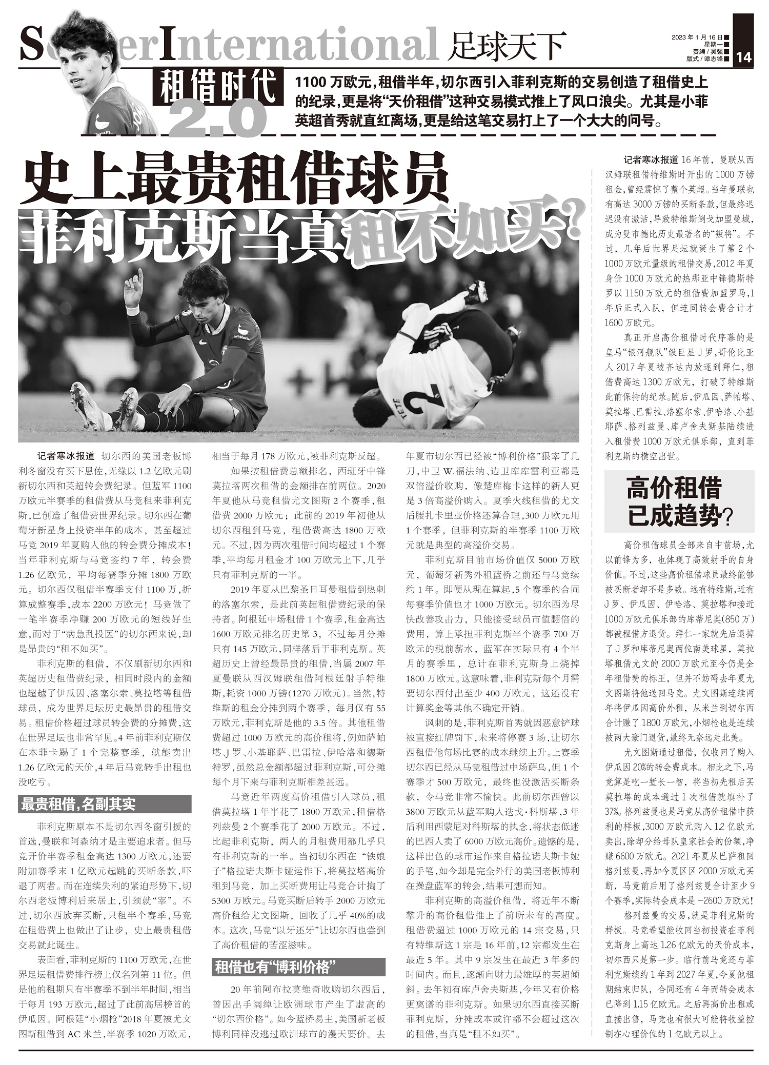 租借时代2.01100万欧元,租借半年,切尔西引入菲利克斯的交易创造了租借史上的纪录,更是将“天价租...