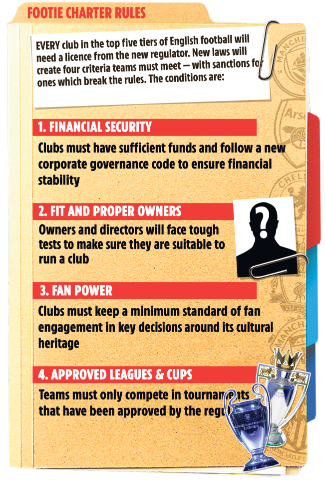 英超将迎来创立30年后最大的“改革”:面对资本的日益汹涌和豪门的贪婪无度,英国政府和英超联盟将联合对英超权力构架进行彻底的重组。进入英超的资本必须透明公开,证明财富来源的合法可靠;全新的独立监管机构将禁止英格兰前5个级别的俱乐部参加欧超这样的全新赛事;英超俱乐部还将缴纳保证金,一部分用于维持监管机构运营,一部分反哺低级别联赛;球迷将在俱乐部管理层获得空前的权力,以监督俱乐部重大事项的决策,以及保护俱乐部的文化传统……