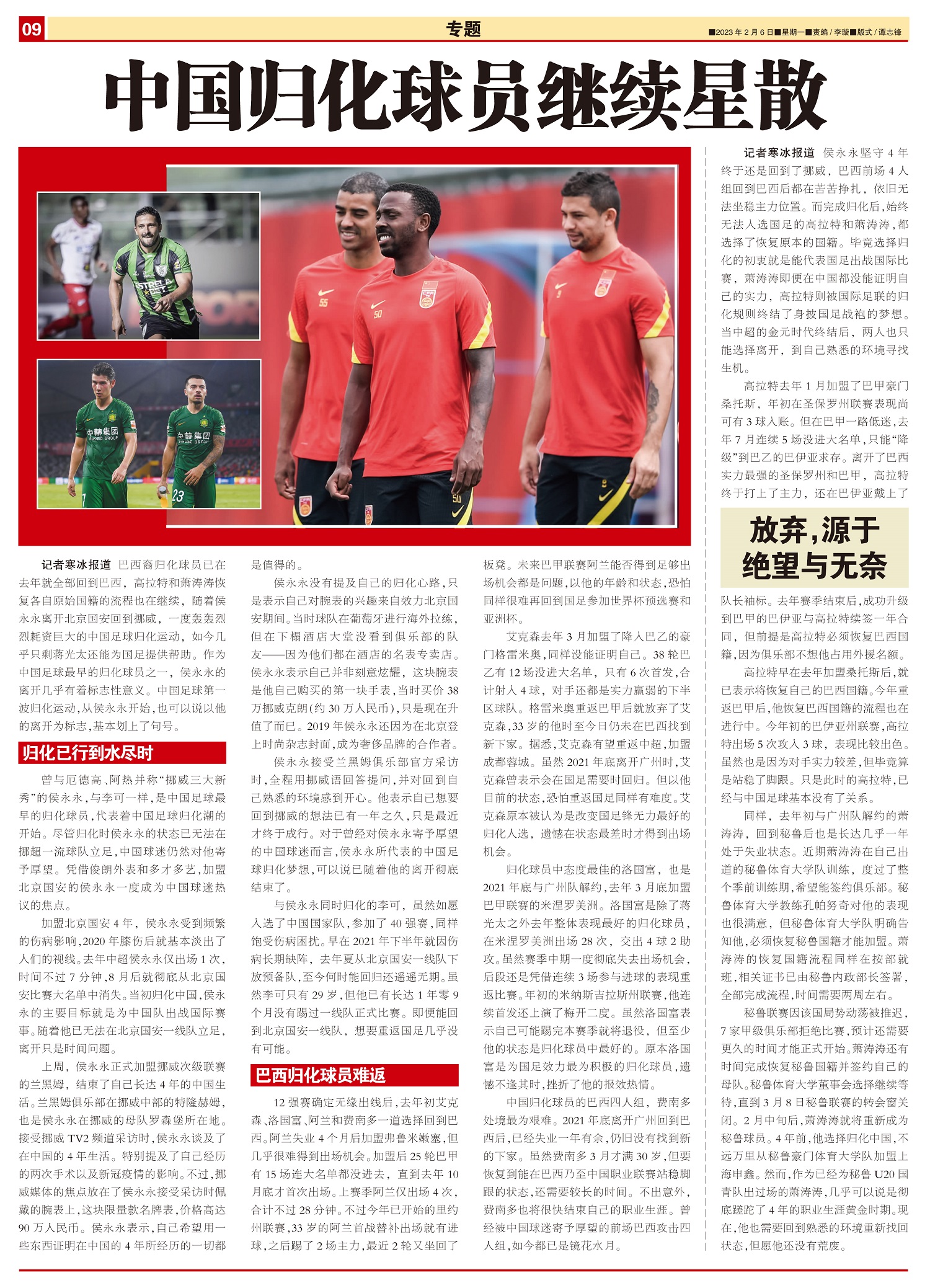 巴西裔归化球员已在去年就全部回到巴西,高拉特和萧涛涛恢复各自原始国籍的流程也在继续,随着侯永永离开北...