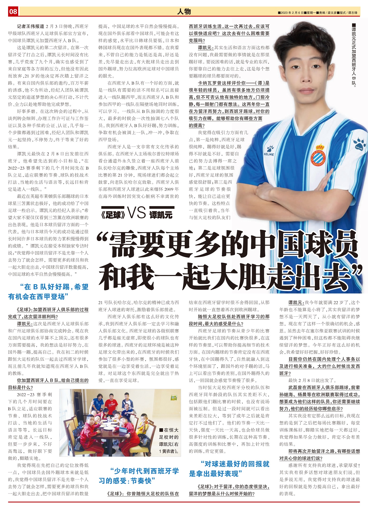 《足球》VS 谭凯元 “需要更多的中国球员 和我一起大胆走出去”