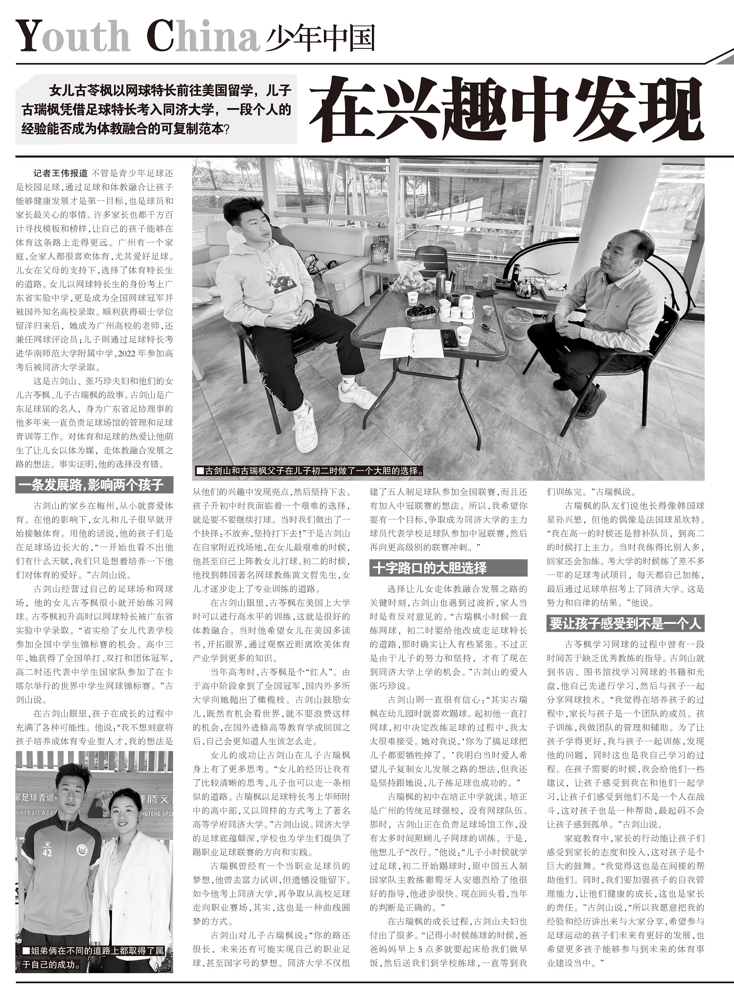 女儿古苓枫以网球特长前往美国留学,儿子古瑞枫凭借足球特长考入同济大学,一段个人的经验能否成为体教融合...