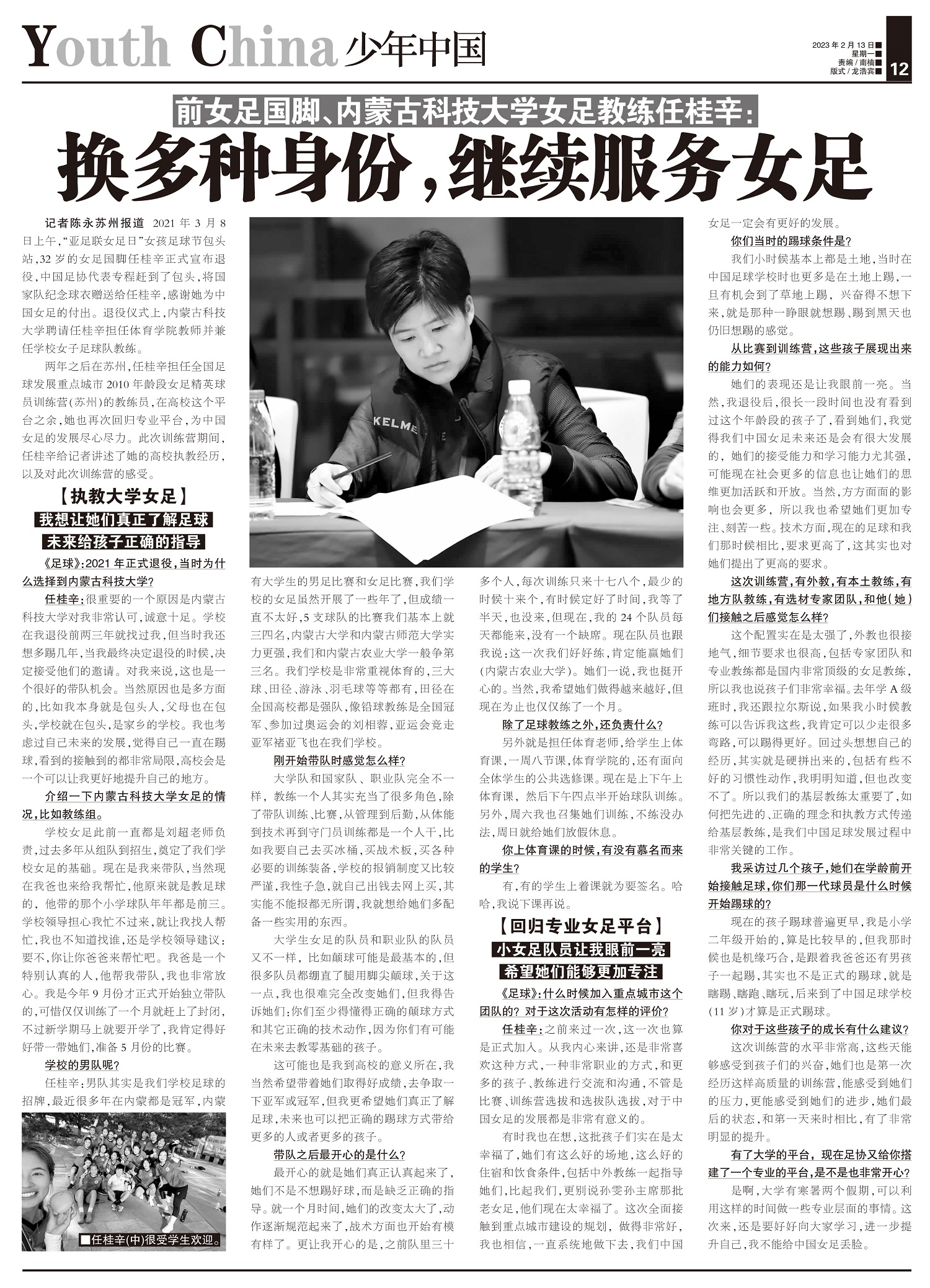 前女足国脚、内蒙古科技大学女足教练任桂辛:换多种身份,继续服务女足