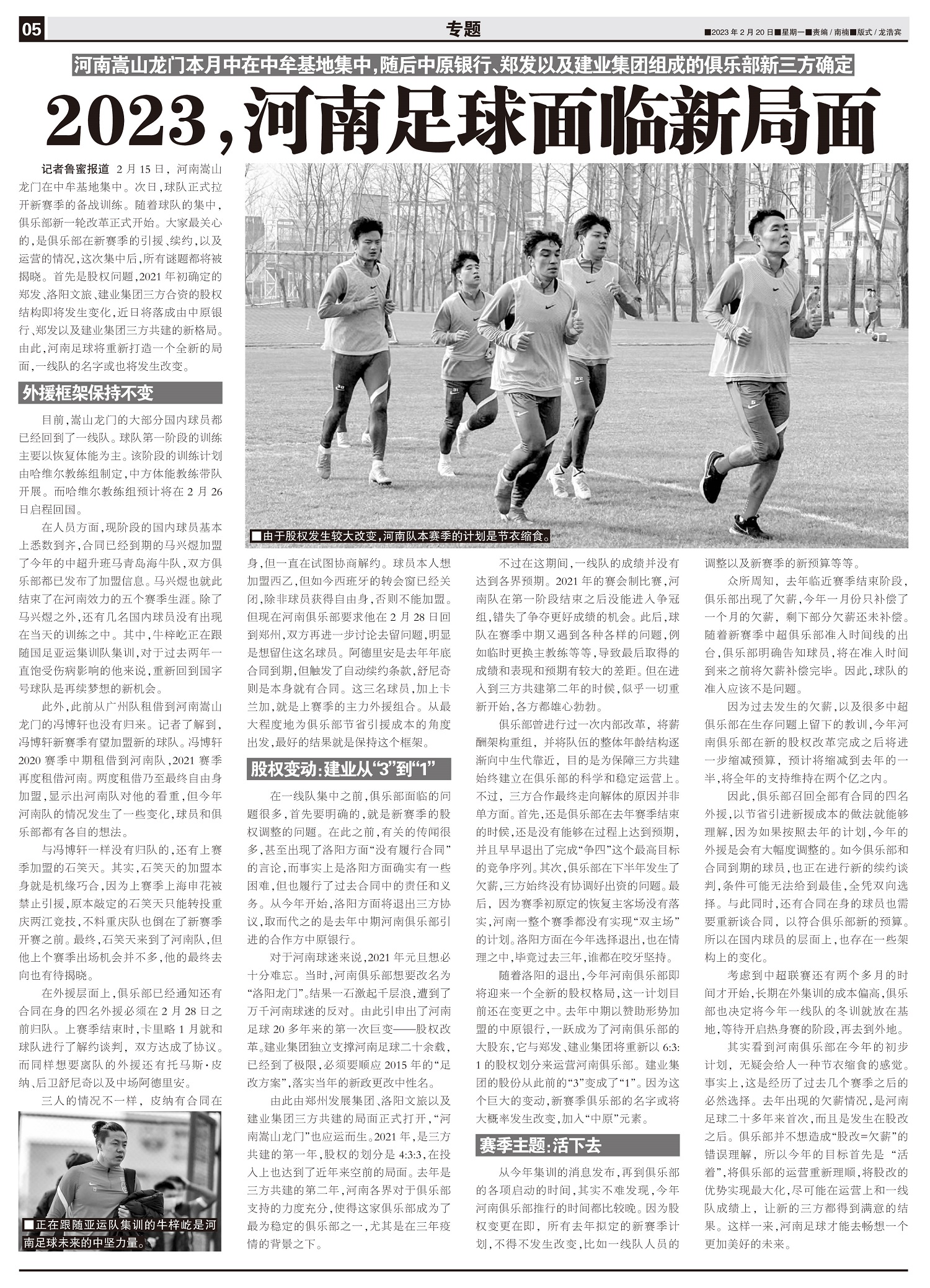 2月15日,河南嵩山龙门在中牟基地集中。次日,球队正式拉开新赛季的备战训练。随着球队的集中,俱乐部新...