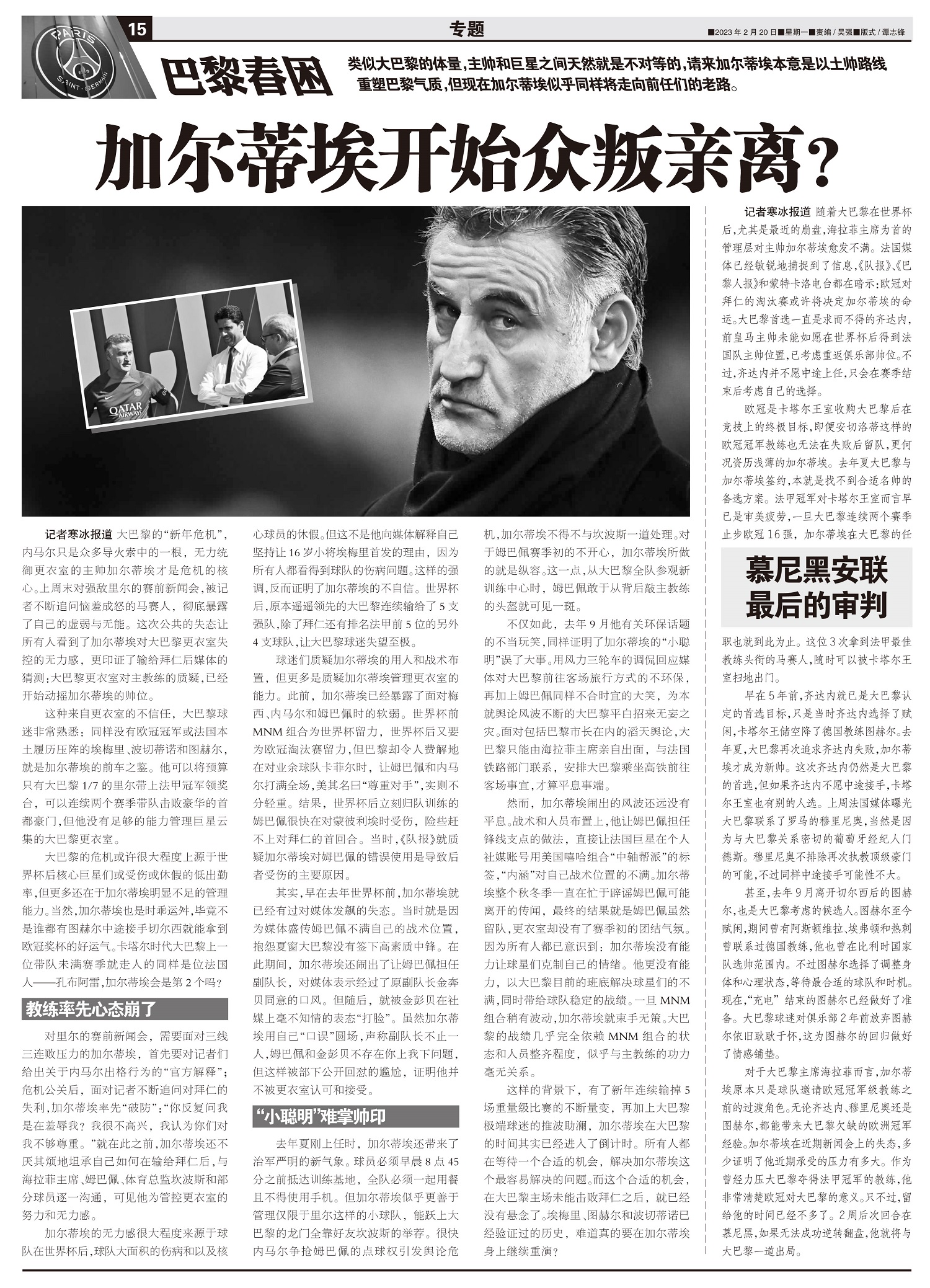 随着大巴黎在世界杯后,尤其是最近的崩盘,海拉菲主席为首的管理层对主帅加尔蒂埃愈发不满。法国媒体已经敏...
