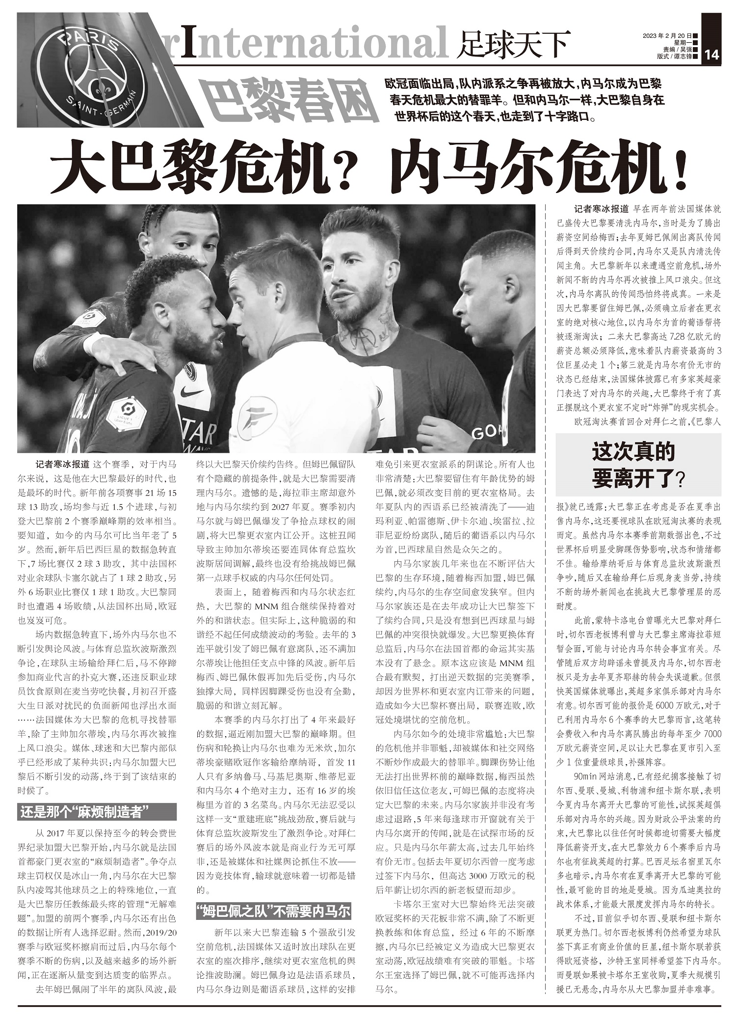 欧冠面临出局,队内派系之争再被放大,内马尔成为巴黎春天危机最大的替罪羊。但和内马尔一样,大巴黎自身在...