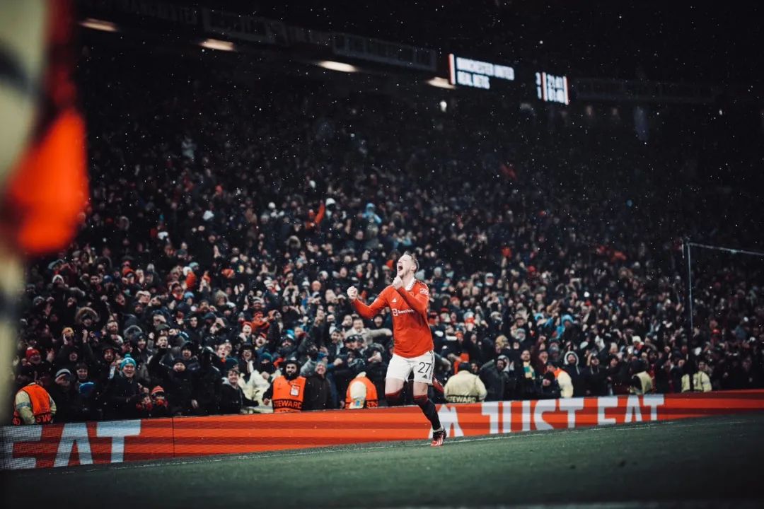 但滕哈赫这次选择了当机立断换人,而不是像双红会0比3时才开始调整。下半场伊始万-比萨卡就换下了达洛特,7分钟后安东尼就接B费助攻让曼联再度领先。红魔队长很快将比分扩大到3比1,老特拉福德球场再次响起了嘹亮的歌声。4比1的大胜不仅让曼联基本锁定了欧联杯8强名额,也让几乎所有“0比7之耻”的球员都得到了救赎。拉什福德开场6分钟就为红魔闪电破门,这是他本赛季各项比赛第26个进球,五大联赛仅次于哈兰德(33球)和姆巴佩(30球)。同时,也是拉什福德前2个赛季进球数的总和。双红会的低迷后,那个新年以来爆发的高效射手又回来了。加盟曼联后,一直被批评勤勉有余能力不足的韦霍斯特终于攻入了自己在老特拉福德的首球,荷兰中锋在曼联主场23次射门后,终于得偿所愿。租借而来的他将自己在曼联的每场比赛都当成最后一场,庆祝进球时这个身高接近两米的大汉高声怒吼,滑跪至角旗杆后更是几乎痛哭,似乎毕生都在等待这个进球。但这就是滕哈赫想要的态度,包括几天来同样被猛烈抨击的安东尼也令人刮目相看,打入了本场最精彩的进球。尽管比赛中,他还是有绝佳机会却选择不传球而是射门,引发了不小的嘘声,至少进球可以平息不少的质疑。德赫亚上半场两度犯错,险些让曼联比分落后,还是靠卢克·肖及时封堵佩雷斯的射门,皮球偏转击中门柱逃过一劫。但整场比赛曼联还是表现出了欧联杯夺冠热门应有的水准,滕哈赫用心良苦,终于让“七耻大辱”的球队自己洗刷了耻辱——没有比这更好的方式,让球员们走出安菲尔德的噩梦。4比1的大胜也是曼联队史第4次连续15个主场进球超过2个,最近1次是2000年10月,距今已有22年。拉什福德的进球则让曼联本赛季的快速反击进球达到12个(其中他本人就占了一半),高居五大联赛榜首。此役战罢,曼联主场各项赛季21场不败,31个胜场也继续高居五大联赛榜首,领先巴萨、皇马、曼城、大巴黎和那不勒斯(27场)。滕哈赫赛后点名表扬了韦霍斯特、B费和替补球员,但更强调全队与4天前犹如天壤之别的比赛态度。特别是遇挫反弹,在0比7之后更显重要。短短4天就走出0比7阴霾的曼联,重新让球迷们看到了继续竞争奖杯和复兴的希望。