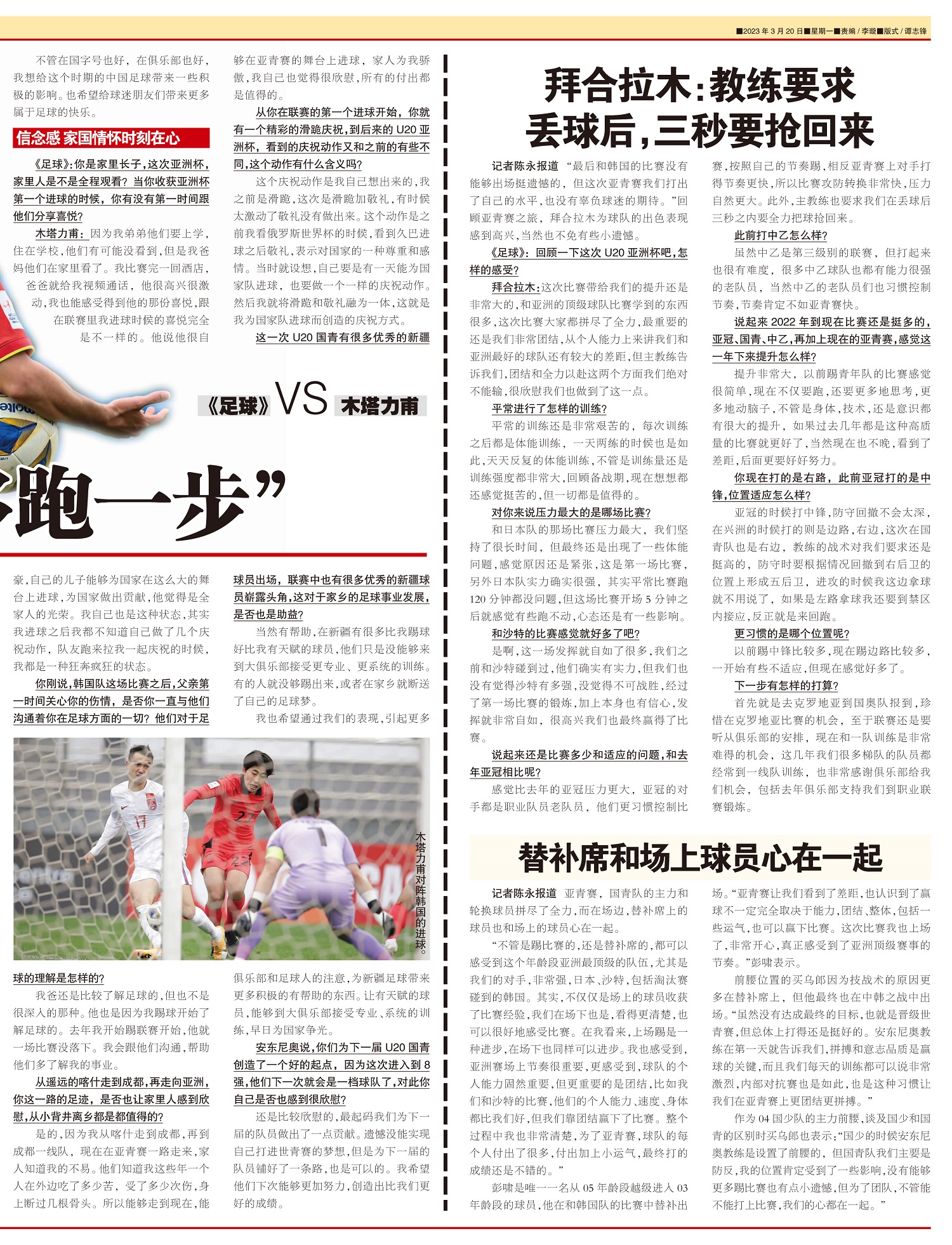 “最后和韩国的比赛没有能够出场挺遗憾的,但这次亚青赛我们打出了自己的水平,也没有辜负球迷的期待。”回...