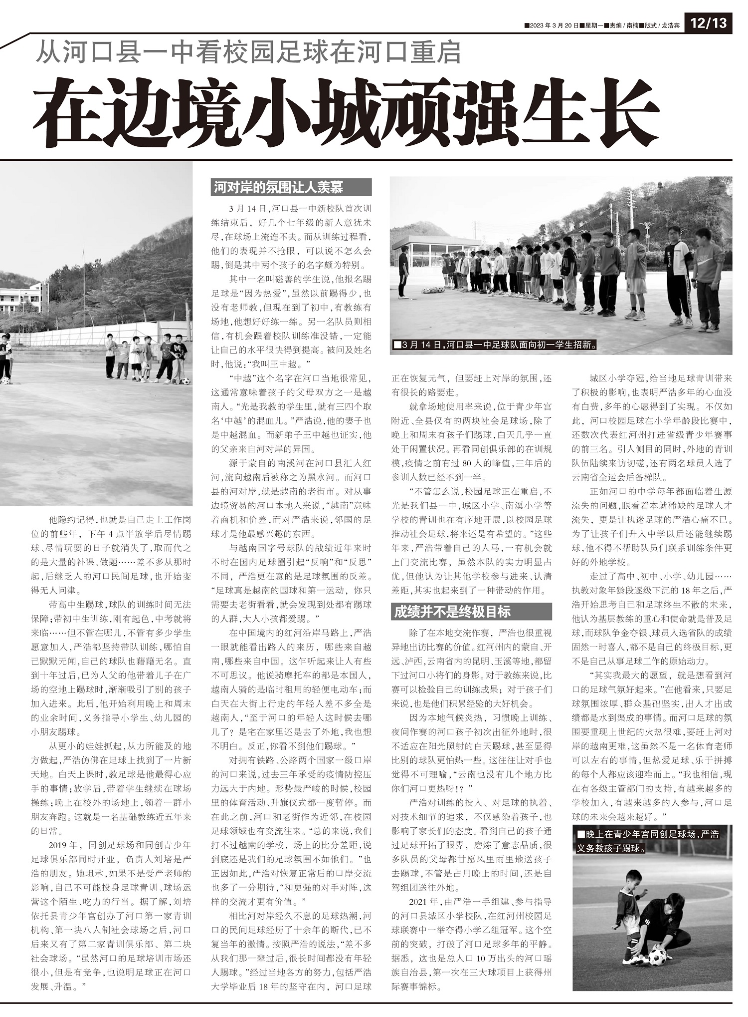 位于云南省东南端、中越两国边境的河口县,同样有孩子满怀对足球的热爱,同样有教练抱定初心扎根基层,河口...