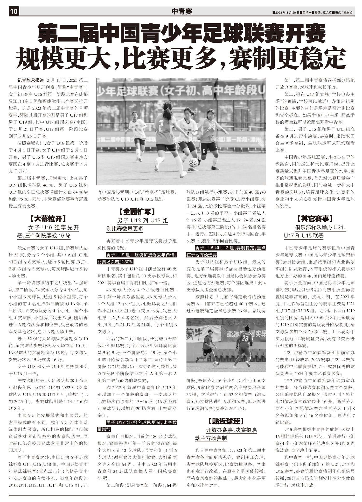 3月15日,2023第二届中国青少年足球联赛(简称“中青赛”)女子初、高中U16组第一阶段比赛在成都...