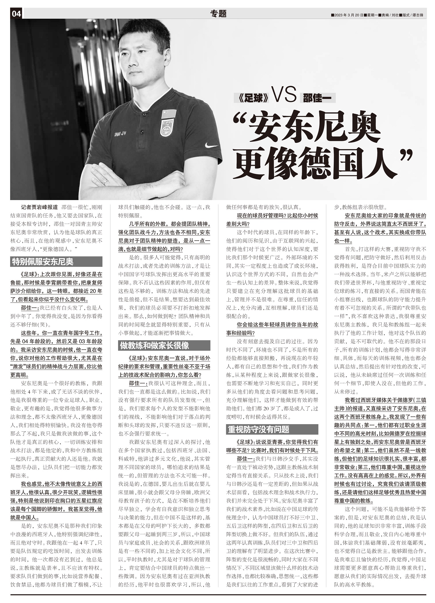 《足球》 VS 邵佳一 “安东尼奥更像德国人”