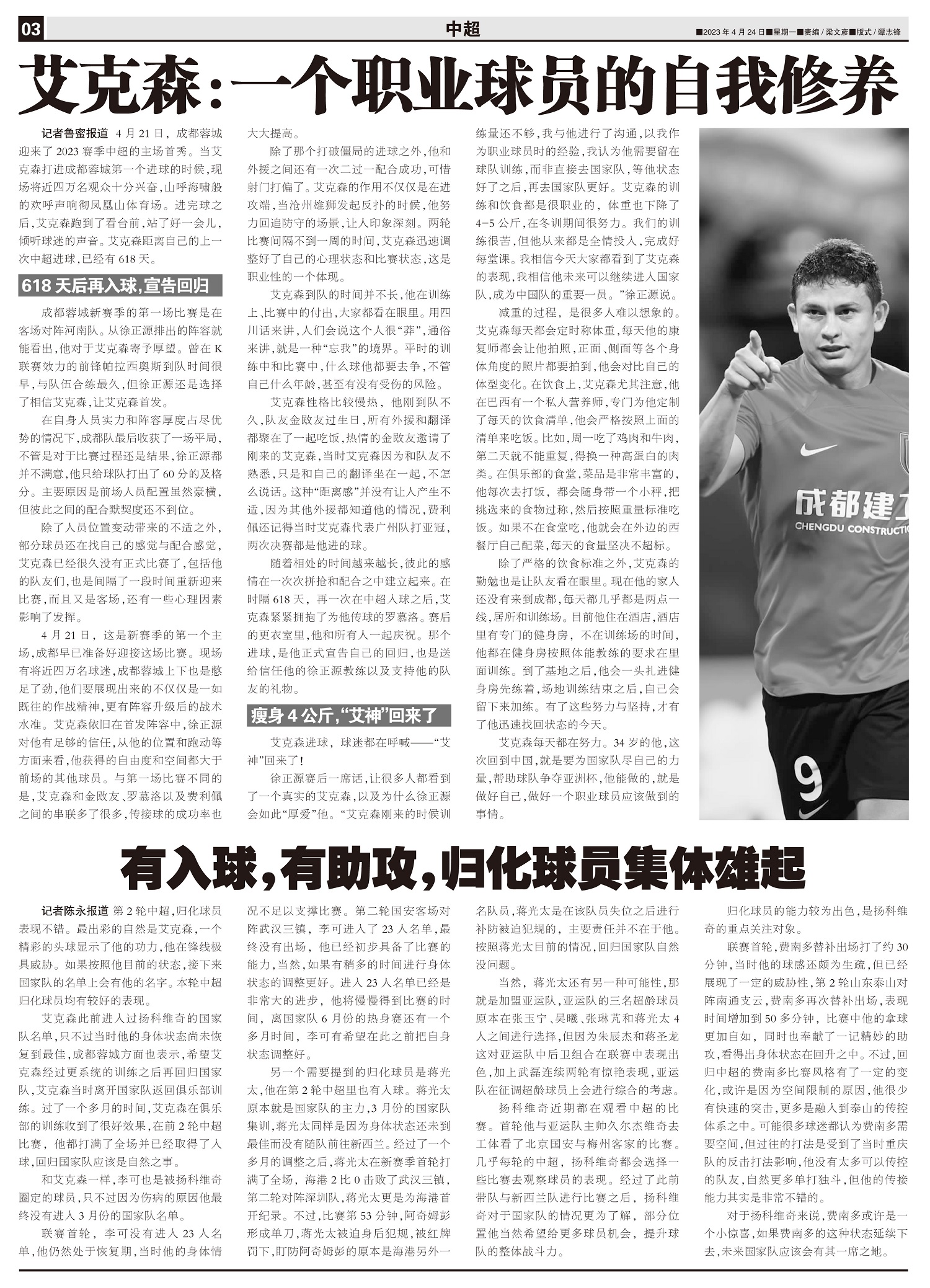 4月21日,成都蓉城迎来了2023赛季中超的主场首秀。当艾克森打进成都蓉城第一个进球的时候,现场将近...