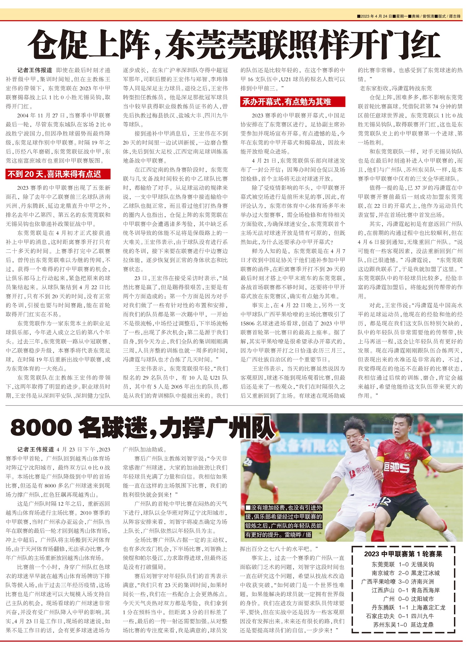 4月23日下午,2023赛季中甲首轮,广州队回到越秀山体育场对阵辽宁沈阳城市,最终双方以0比0战平。...