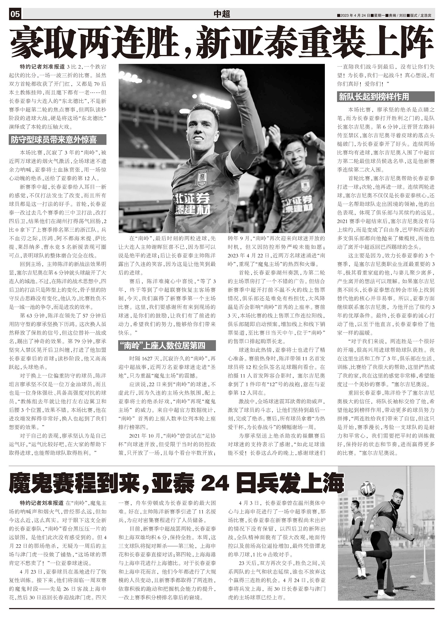 2023赛季中超联赛开局连胜山东泰山、梅州客家之后,上海申花与长春亚泰、上海海港同积6分,暂列联赛积...