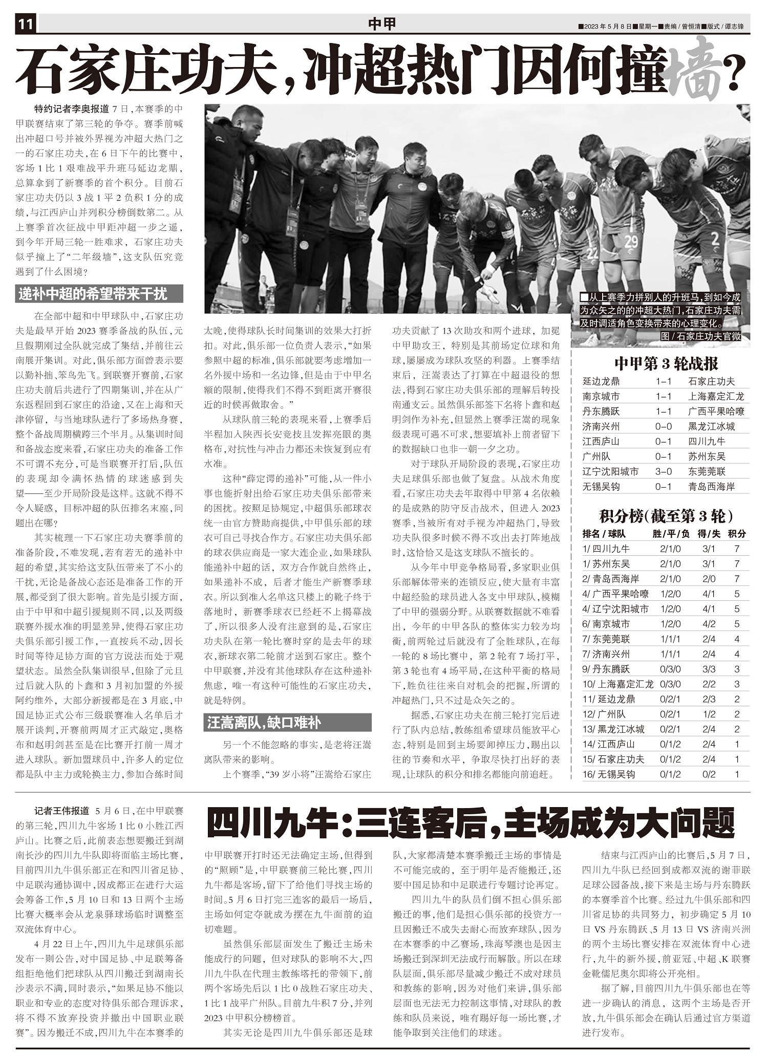 7日,本赛季的中甲联赛结束了第三轮的争夺。赛季前喊出冲超口号并被外界视为冲超大热门之一的石家庄功夫,...