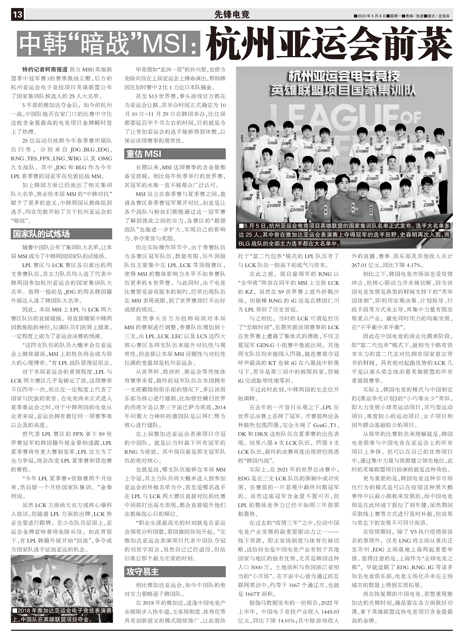 前方MSI(英雄联盟季中冠军赛)的赛事激战正酣,后方的杭州亚运会电子竞技项目英雄联盟公布了国家集训队...