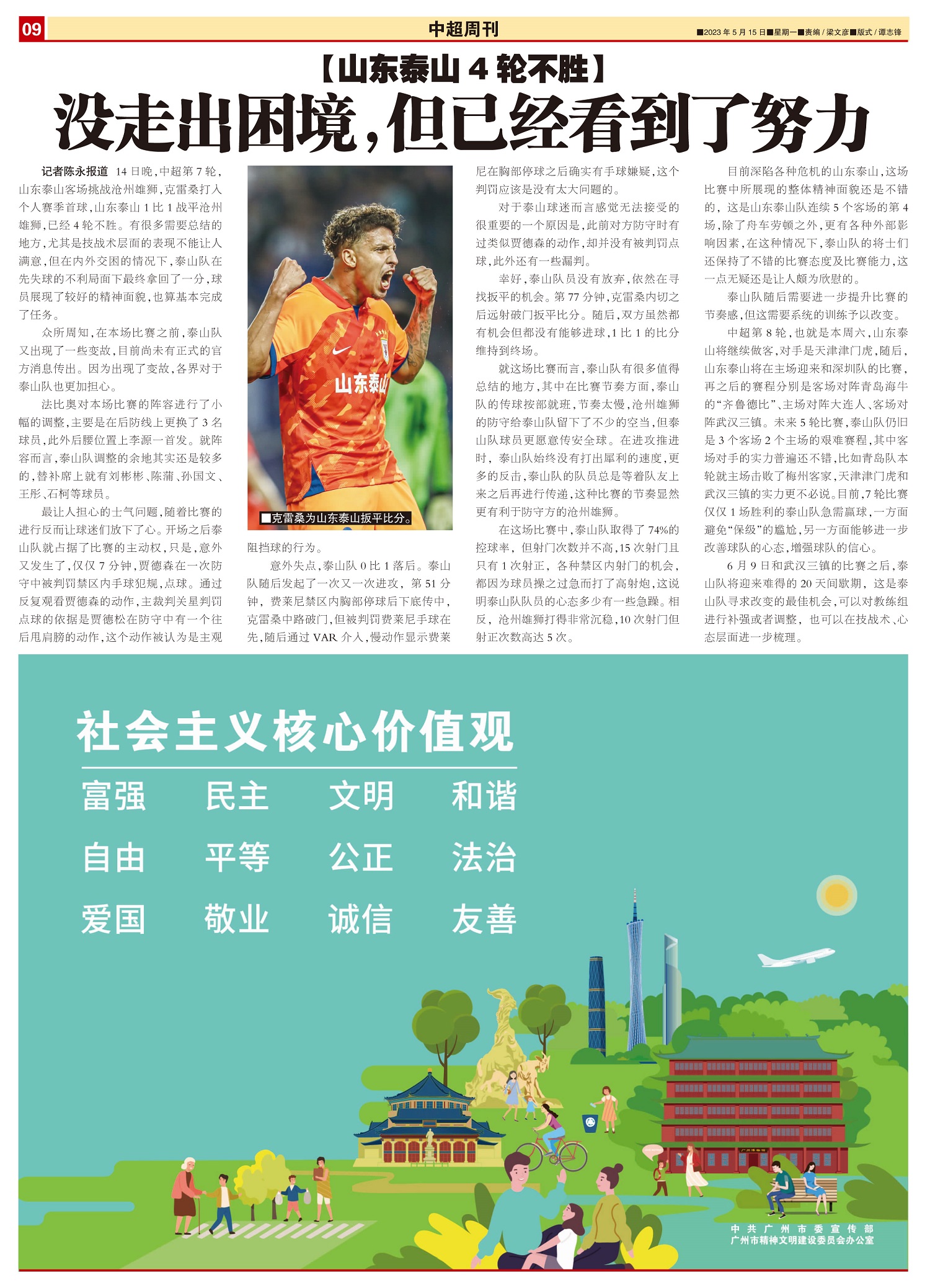 【山东泰山4轮不胜】 没走出困境,但已经看到了努力