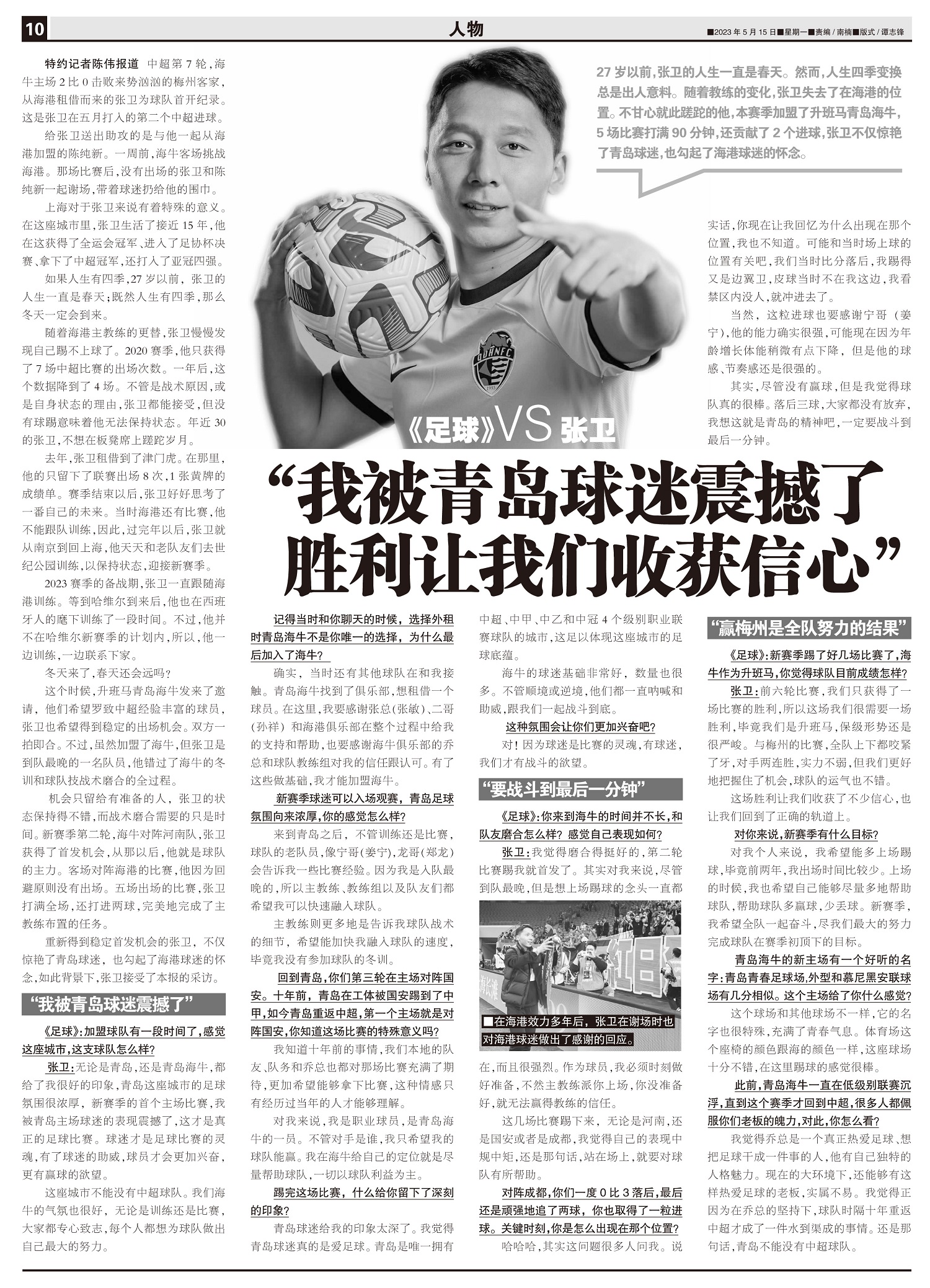 《足球》VS张卫 “我被青岛球迷震撼了 胜利让我们收获信心”
