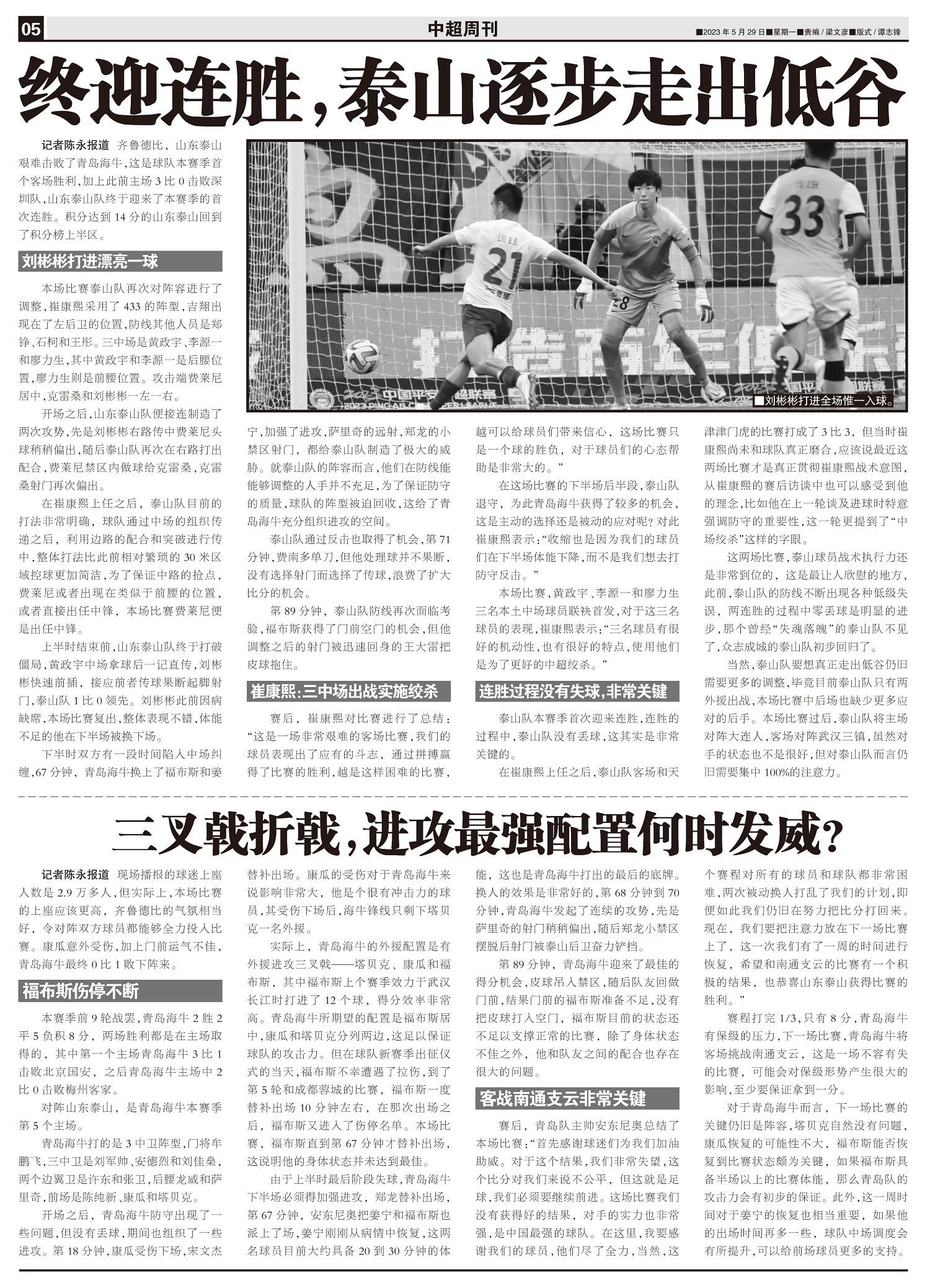 终迎连胜,泰山逐步走出低谷