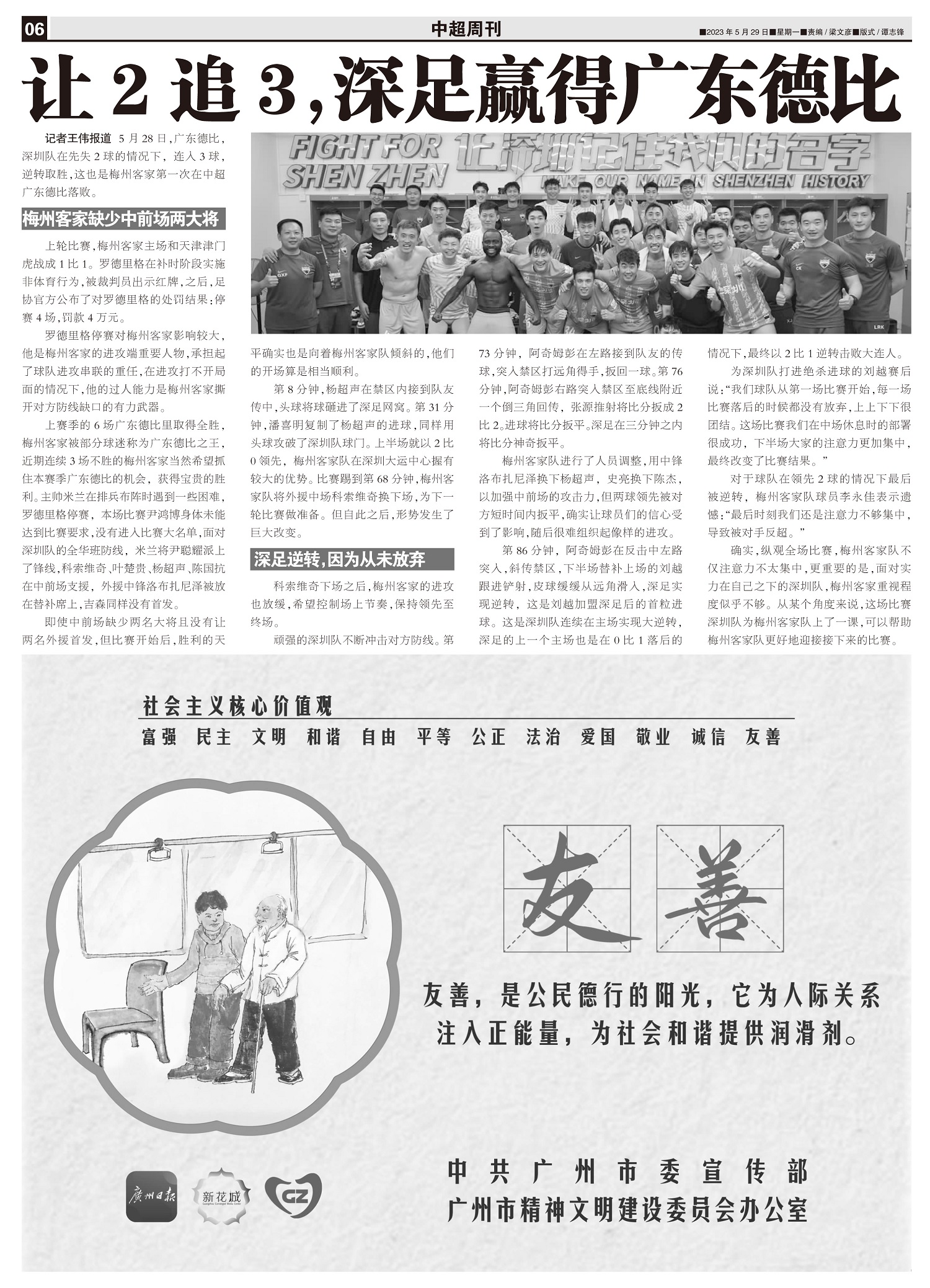 5月28日,广东德比,深圳队在先失2球的情况下,连入3球,逆转取胜,这也是梅州客家第一次在中超广东德...