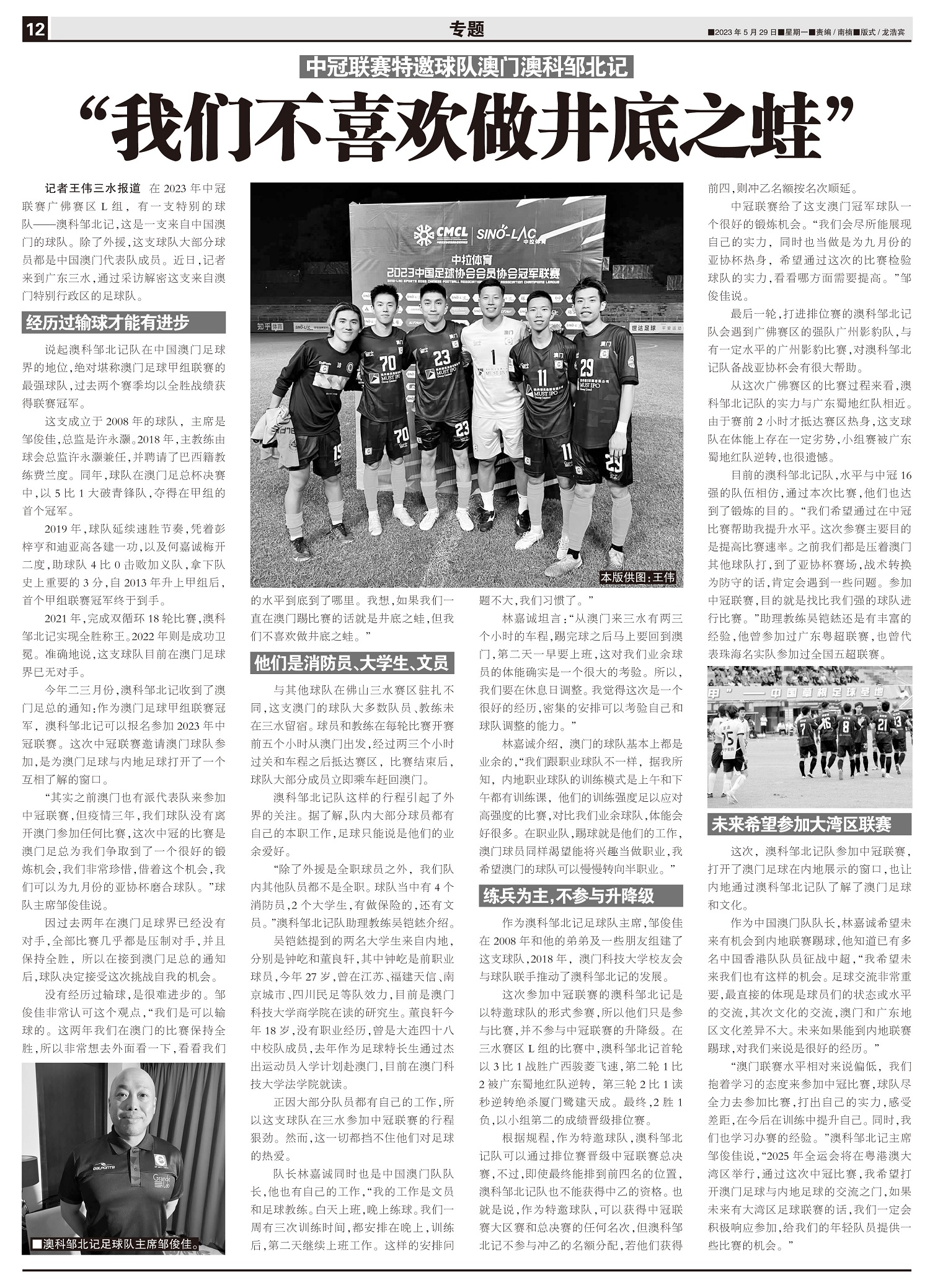 中冠联赛特邀球队澳门澳科邹北记 “我们不喜欢做井底之蛙”