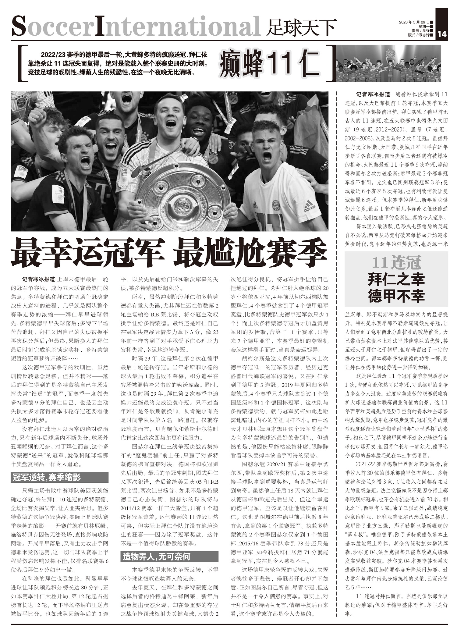 癫蜂11仁2022/23赛季的德甲最后一轮,大黄蜂多特的疯癫送冠、拜仁依靠绝杀让11连冠失而复得,绝...