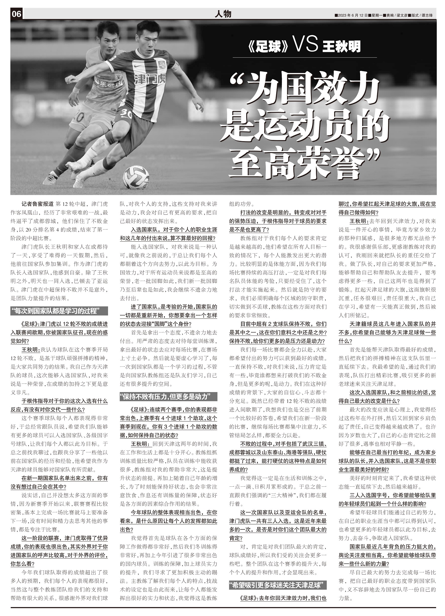 《足球》VS王秋明 “为国效力是运动员的至高荣誉”