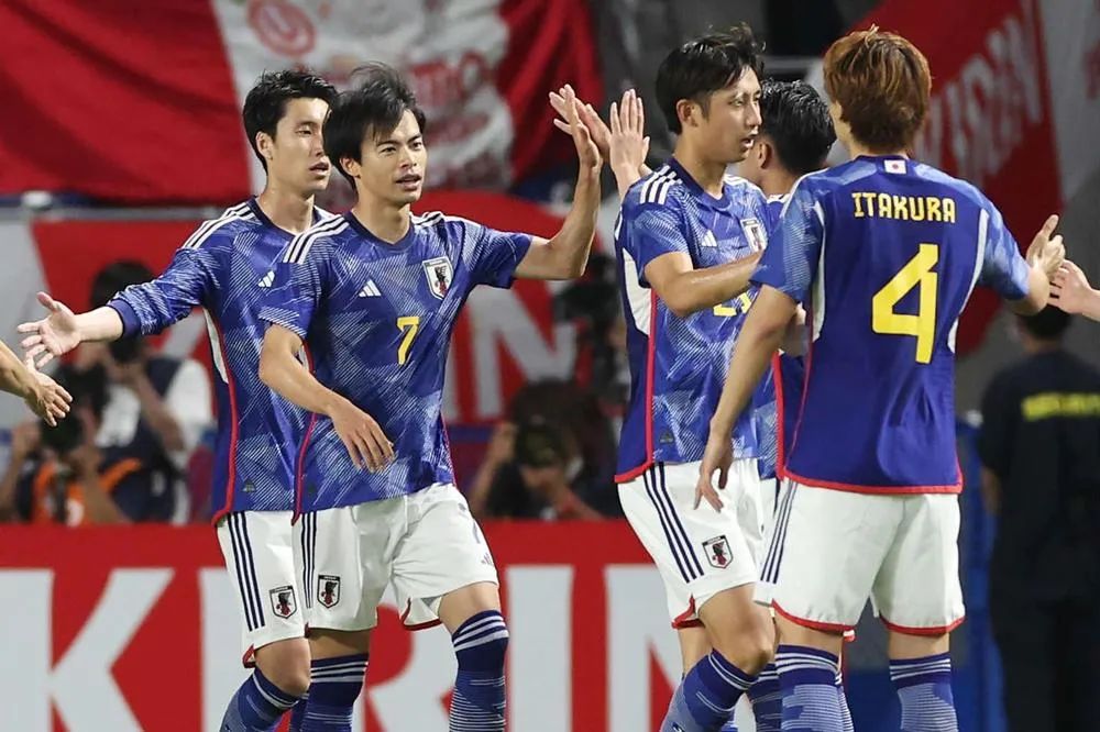 上次日本两战进球最多是2016年6月,对波黑和保加利亚合计攻入9球,而6比0萨尔瓦多的进球数,仅次于2016年6月7比2保加利亚,也是日本对中北美球队的最大胜利;而4比1秘鲁仅次于2009年5月4比0智利,与去年4比1巴拉圭并列对南美球队第二好胜绩。31年来,日本队在单一国际比赛日热身赛两连胜共计14次,但这次最令人震惊。连胜萨尔瓦多和秘鲁后,森保一执教的日本队对美洲球队胜率进一步提升。其中对南美球队5胜5平5负,对手平均世界排名27.4位,对中北美球队6胜1平3负,对手平均世界排名51.5位。在输巴西、哥伦比亚,平厄瓜多尔、乌拉圭后,森保一最近对南美球队的不胜纪录终于终结。秘鲁世界排名(21位)仅比日本队低一位,森保一续约后,曾表示要不断向世界强队发起挑战。6月国际比赛日前,森保一放出要在2026世界杯冲击8强,甚至争冠的豪言。争冠也许过于夸张,但至少6月连续大比分击败萨尔瓦多和秘鲁,让日本足球看到了冲击8强的希望。能够连续大比分击败南北美球队,旅欧球员发挥了关键作用。上赛季在英超打出名堂的三笘薰,已连续4场首发,成为新的进攻核心。首战萨尔瓦多,他只踢了上半场就两次助攻,4比1对秘鲁刚过1小时就上演传射,堪称MVP,目前,他已是身价最高的日本球员,短短一年激增12.8倍,从250万欧元飙升到3200万!他的表现,再次证明旅欧对日本队实力提升的重要性。森保一的23人大名单中,旅欧球员多达18人,两场比赛17名首发球员,仅替补门将大迫敬介、右后卫森下龙矢、中卫谷口彰悟3人不是旅欧球员。前两人首战对萨尔瓦多都是考察对象,谷口彰悟今年初加盟卡塔尔的赖扬,也算留洋。对阵实力更强的秘鲁,森保一的主力阵容只有谷口彰悟不是旅欧球员,6名替补球员同样旅欧。10个进球来自10名球员,7个助攻来自5名球员,除了谷口彰悟都是旅欧球员。早在一周前公布号码时,3月身穿9号的三笘薰改为更符合战术位置的7号,3月缺席大名单的堂安律从24号换到10号,新科苏超金靴古桥亨梧从28号换成11号,基本奠定了主力位置;而首战萨尔瓦多1球2助的久保建英与三笘薰一道,成为两翼齐飞的利器。唯一有些令人失望的是,上赛季在凯尔特人50场34球5助攻的古桥亨梧,首战替补出场对萨尔瓦多有进球,但对秘鲁打满90分钟颗粒无收,恐怕在中锋竞争中依旧处于劣势。这次日韩热身赛横向对比,依然是日本领先一个维度。短短一年,日韩差距就迅速被拉大——去年6月,韩国虽然1比5惨败巴西,但4场热身赛3场不败,日本则是2胜2负。今年3月,日韩对乌拉圭和哥伦比亚都是1平1负,不分伯仲。这次孙兴慜有伤,韩国队0比1不敌秘鲁,1比1被萨尔瓦多逼平,被两战攻入10球,赢得两场大胜的日本远远甩开。随着三笘薰、久保建英、古桥亨梧、上田绮世为首的日本旅欧军团集体爆发,日韩未来的差距,可能会进一步拉大。