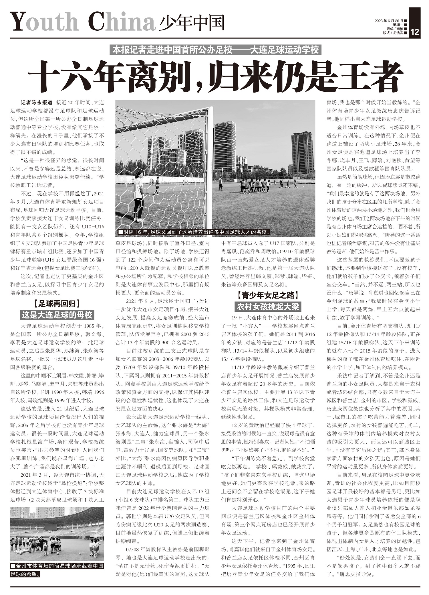 本报记者走进中国首所公办足校——大连足球运动学校 十六年离别,归来仍是王者