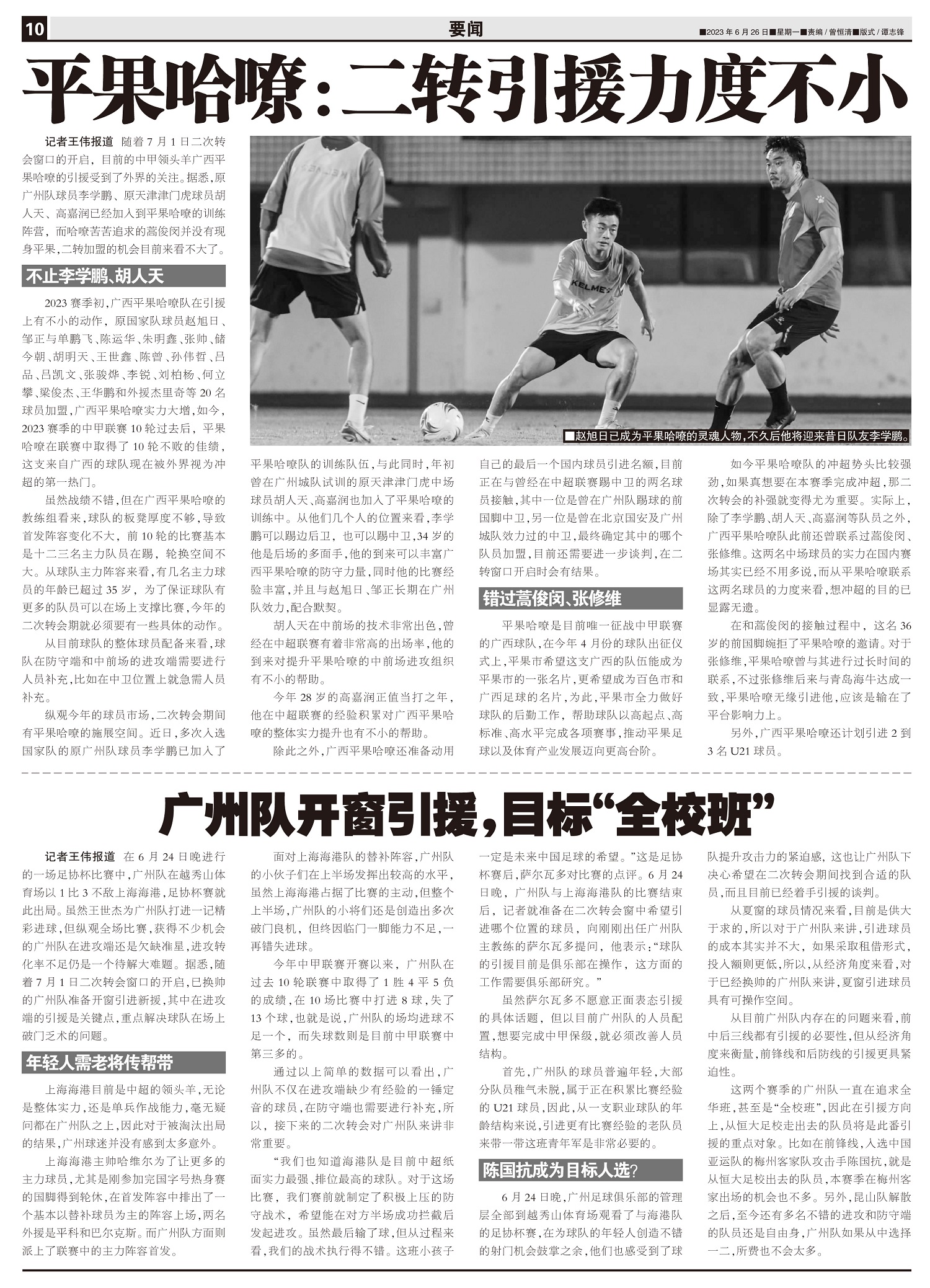 随着7月1日二次转会窗口的开启,目前的中甲领头羊广西平果哈嘹的引援受到了外界的关注。据悉,原广州队球...