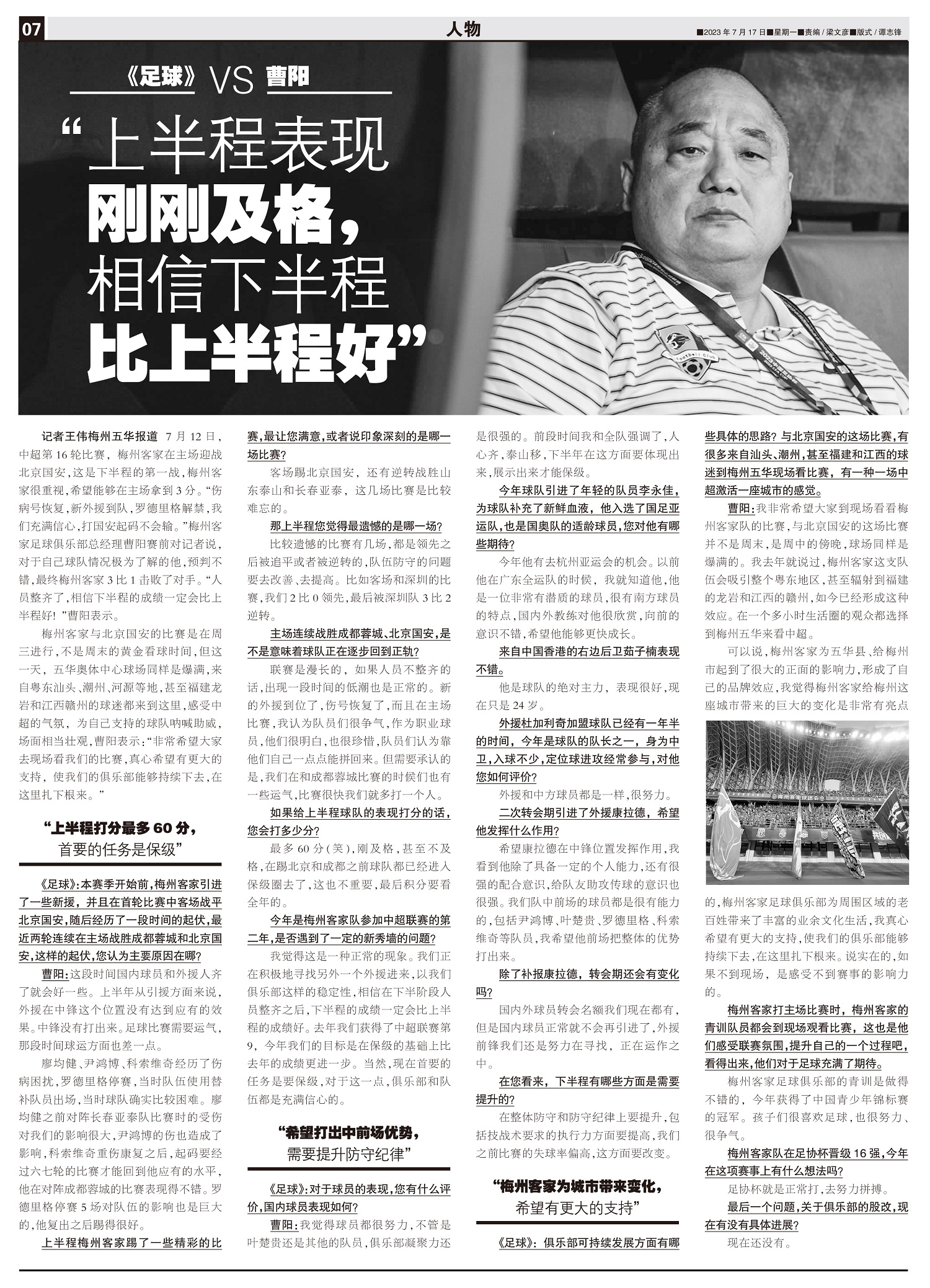 7月12日,中超第16轮比赛,梅州客家在主场迎战北京国安,这是下半程的第一战,梅州客家很重视,希望能...