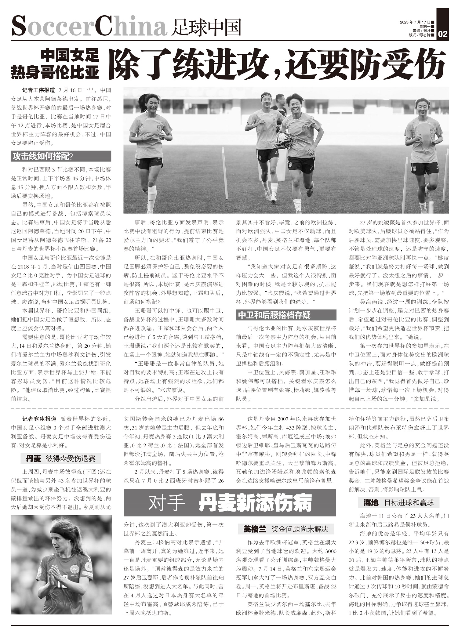 中国女足热身哥伦比亚 除了练进攻,还要防受伤